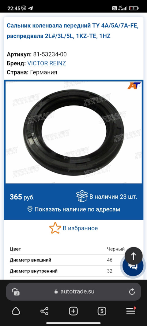 - Уплотняющее кольцо, коленчатый вал