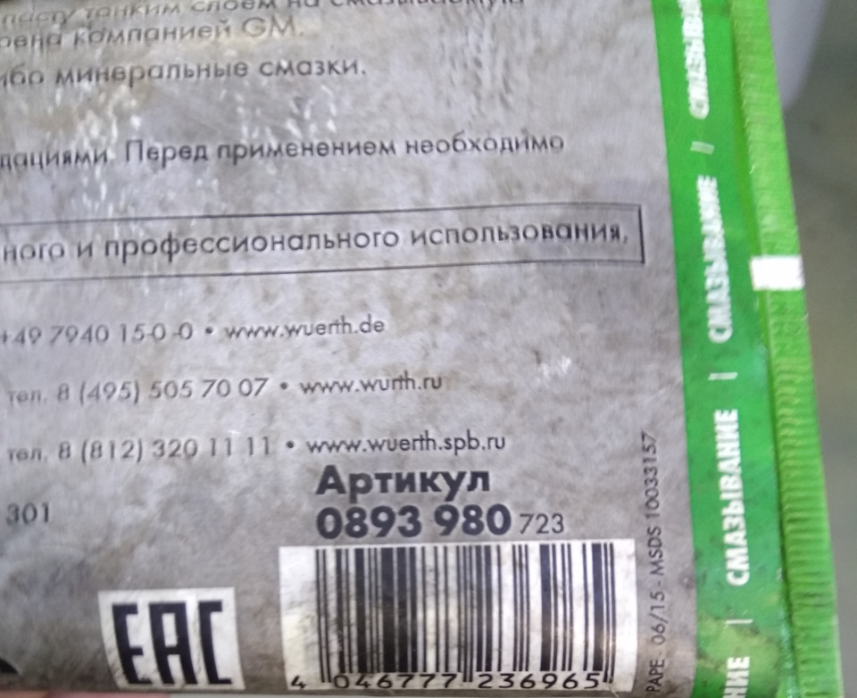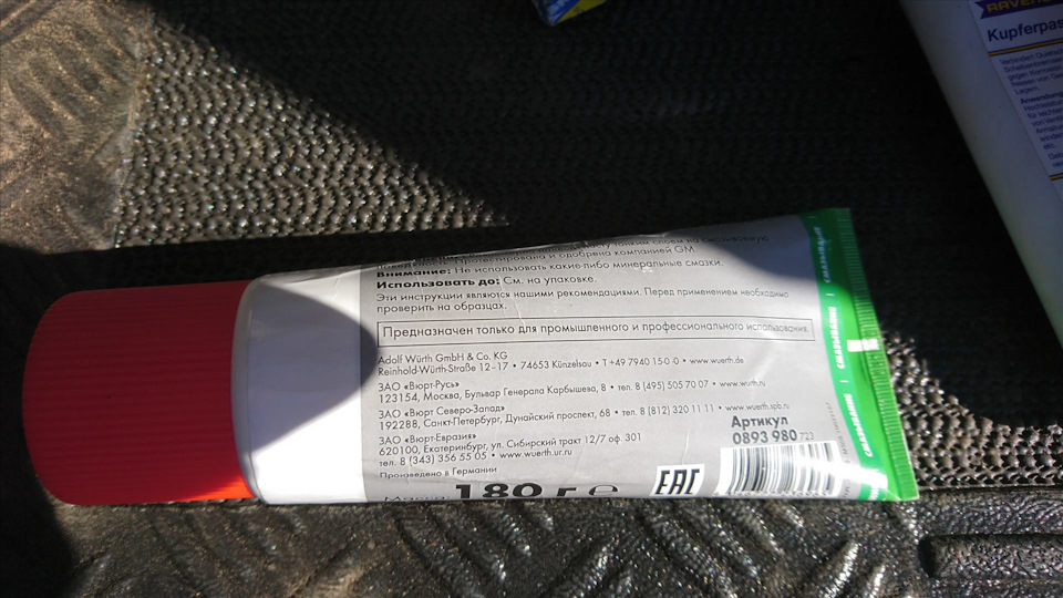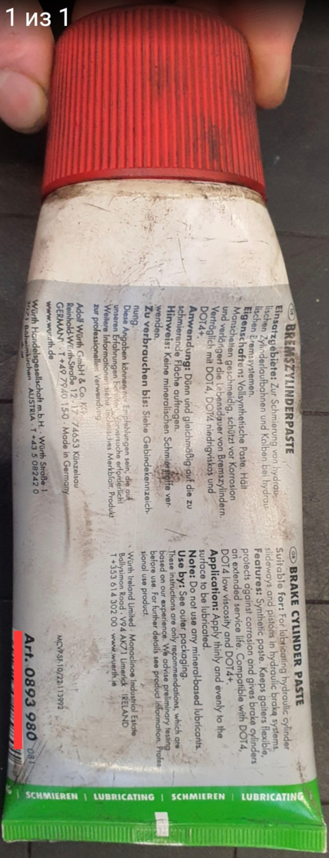 - Паста для тормозных цилиндров WURTH, 180 гр.