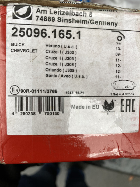 - Комплект тормозных колодок, дисковый тормоз