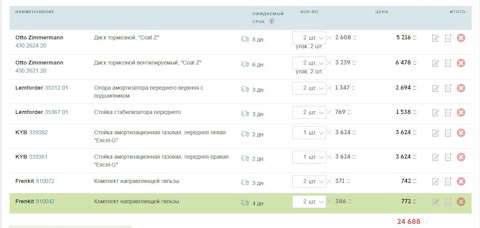- 1,5 млн. наименований запчастей в ассортименте