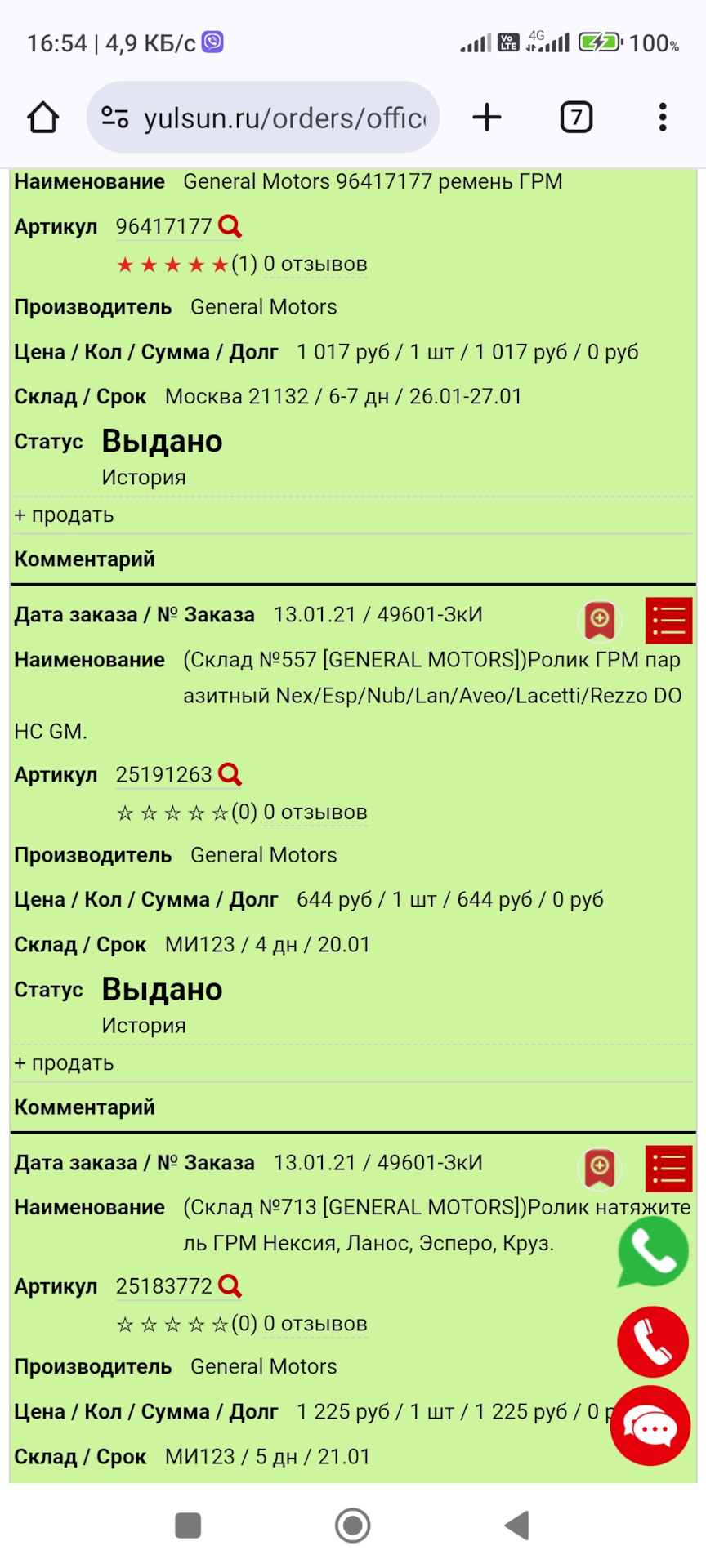 пришли запчасти для ТО-4