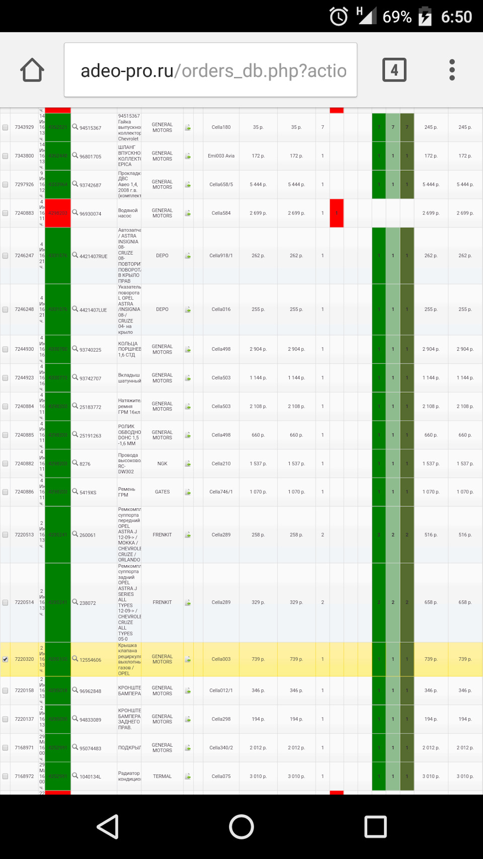 Список запчастей