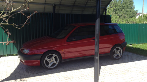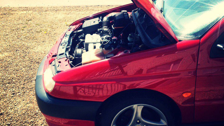 Помню я еще ходил в школе, когда в соседнем дворе стояли рядом две 145ки, тогда они и запали мне, в прочем как и сама марка Alfa Romeo. И вот она у меня, после многочисленных бесполезных разъездов по РБ все-таки я нашел её в столице такую какую хотел, именно с оппозитным двигателем 1.6 дорестайлинговая модель. Машина была в родной краске Rosso с полностью заводским остеклением и деталями как по кузову, так и по двигателю. От части это хорошо, но многое пришлось заменить из-за негодности. В машину денег не жалею, поменял в ней многое и даже перекрасил: база Maserati под 3мя слоями лака — на солнце выглядит обалденно, до сих пор привыкнуть не могу)