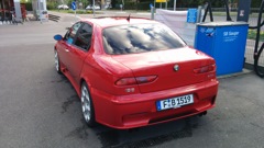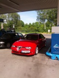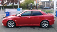 Альфа Ромео 2003г. выпуска. Модель: 156 ГТА с V6 3.2 на бензине. Мощность уже 270л.с. после чип тюнига (в оригинале 250). Красного цвета и черным салоном.