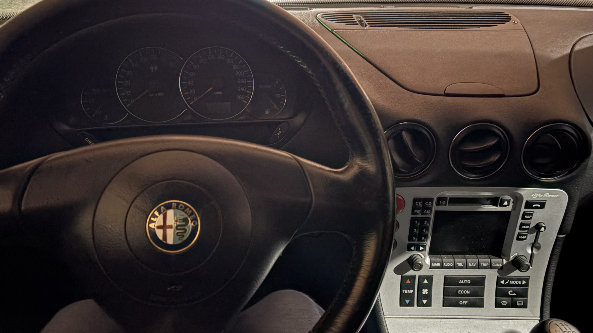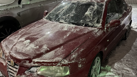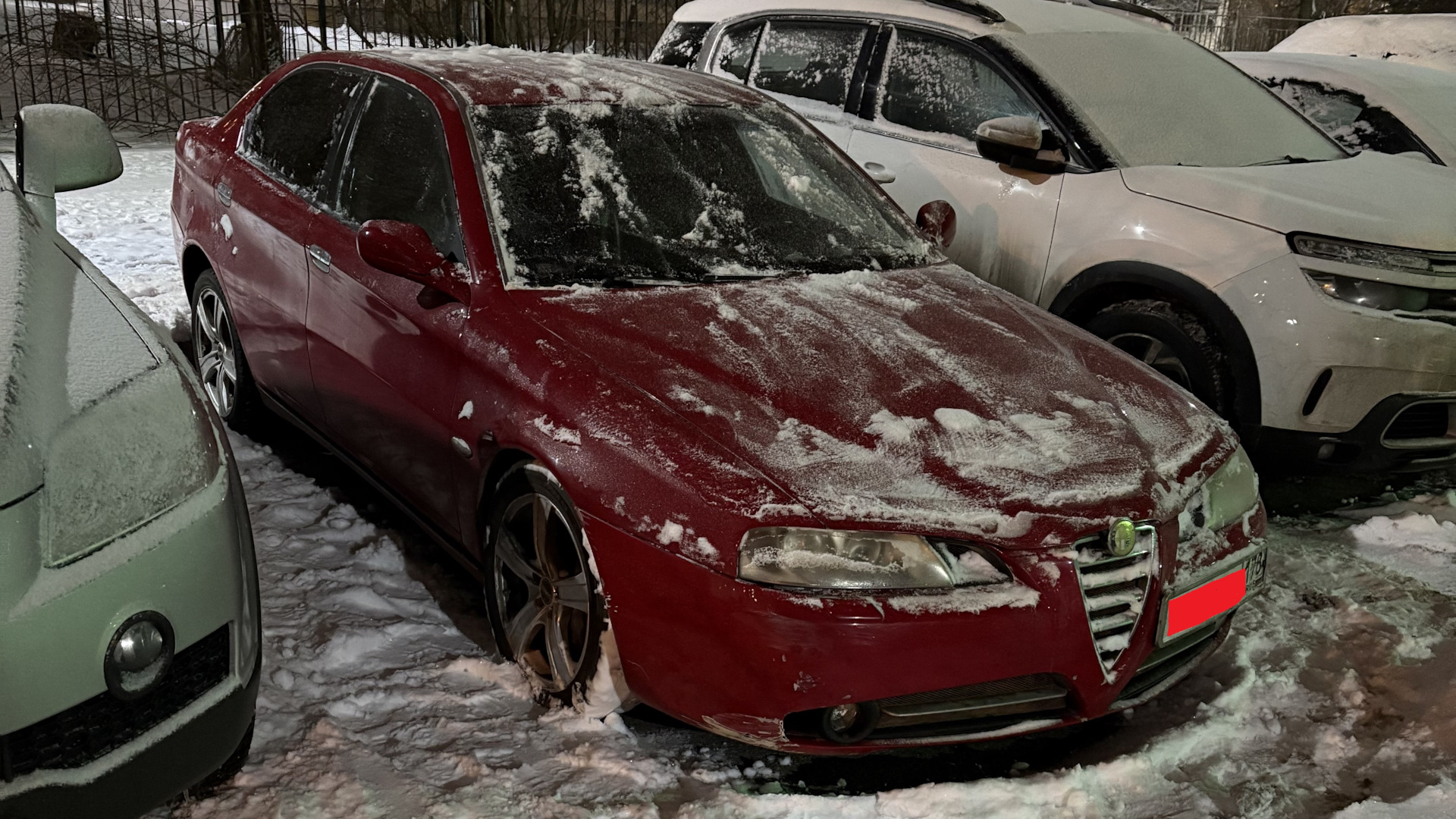 И вот наступил новый 2025 год. Мы с семьей уехали на праздники в другой город, где было много свободного времени, новые эмоции, голова перезагрузилась, и я вдруг вспомнил про Альфу. От нечего делать начал читать про нее информацию — форумы, бортовые журналы, смотреть просто красивые картинки и понял, что, блин, у меня рядом с домом стоит реально редкая и желанная альфистами машина, а увидев фотографии какой она может стать, уже не мог спокойно спать и ждал, когда мы двинемся домой чтобы проверить — стоит ли она на прежнем месте. И она меня ждала) а я посмотрел на нее совсем другим взглядом. Комплектная, в классном цвете Rosso Alfa, который заиграл совсем по-другому, избавившись от пыли, и я сразу связался с Дмитрием с предложением о повторной встрече. Что же в ней особенного? Это рестайлинг конца 2003 года, с мотором 3.2V6 в комплектации Ti на механике в цвете Rosso Alfa 130. Ну не красота ли?