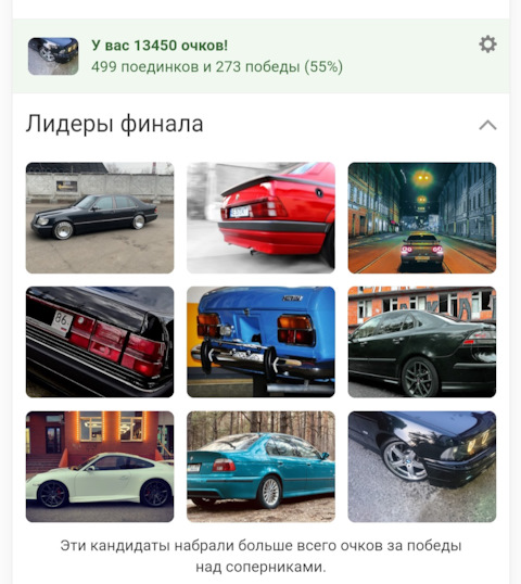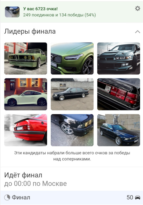 Поздравляем! Вы победили в Гонке и стали кандидатом на Выборах машины дня!