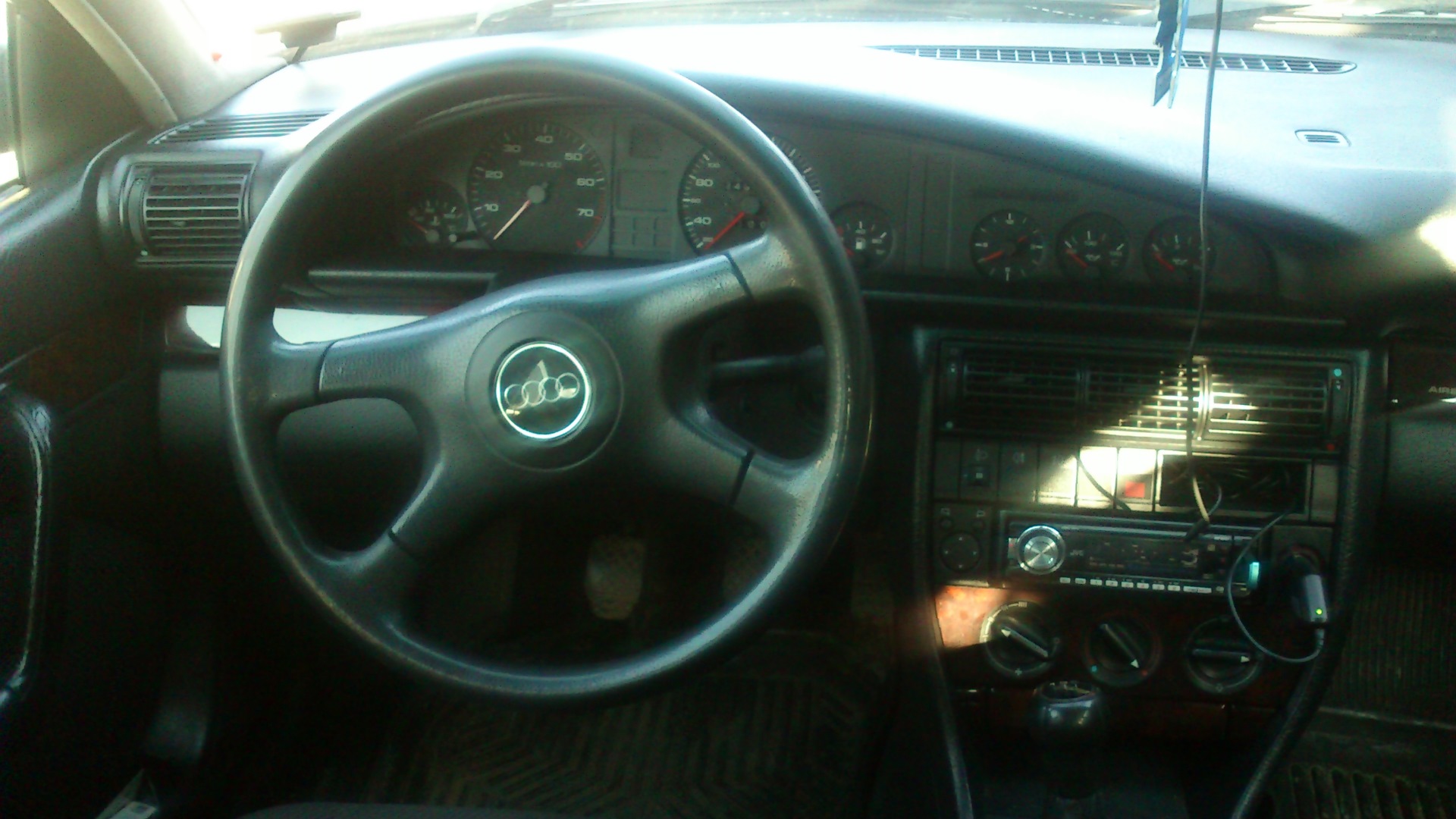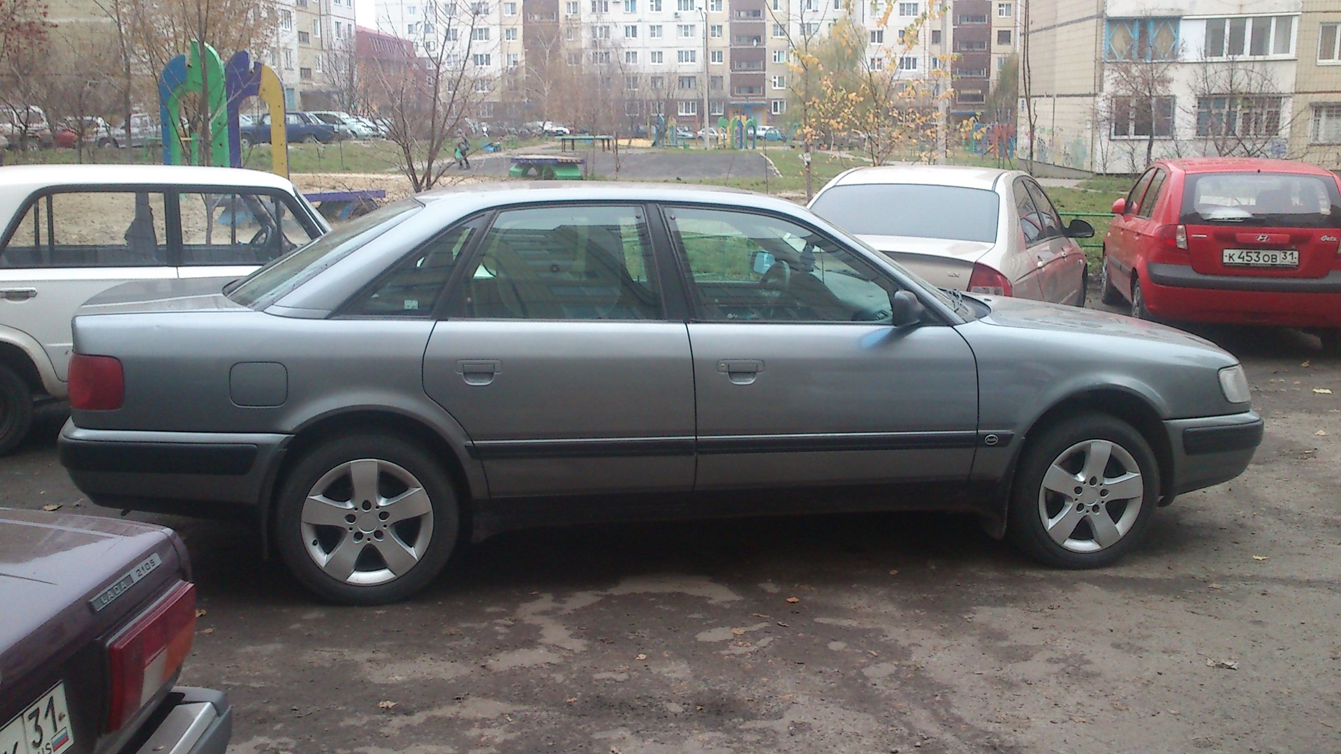 Машиной владею около года. Покупал в Москве так как ценник в моем городе на них неадекватный, и московских реагентов машина не боится, даже такого года железо все живое…Двигатель V6-2.6 монопривод. Комплектация:Мкп, AБС, Гур, передние ЭСП, корректор, электрозеркала с подогревом, электролюк.без кондея, салон темный велюр, полная панель, вставки под дерево. После года эксплуатации особо ничего серьезного не делал. Прежний хозяин перед продажей откапиталил движок, сделали на совесть, т. к. масло практически не доливаю, максимум грамм 200-300 на 7500-8000 км… И как правило после активной езды, летом езжу по резвее, зимой потише, соответственно зимой не подливаю вообще. Масло как и старый хозяин лью Мобил1 5-40 синтетику. Поменял все жидкости сразу, ремень ГРМ не трогал так как менялся вместе с ремонтом двигателя, и проехал он на нем около 5 тыс км. Документы предоставил… Я на всякий случай загонял к знакомому в сервис, подтвердили-ГРМ новый. Салон в неплохом состоянии был изначально, за исключением водительской сидушки(боковая поддержка протерлась до дырки в велюре)Если не найду рекаро то отдам на перешивку… И потолок портил весь вид. Потолок перетянул похожим по структуре серым велюром вместе со стойками, отдал 3000р.за работу и рублей 700 за материал. Так же замена 4-Х сайлент блоков, два спереди и два сзади рублей по 100 за штуку точно не помню. Поменял две задние стойки перед поездкой на юг, т.к. одна вытекла, не стучала но машину качало как на волнах, ездил с детьми и что бы их не укачивало от лишних колебаний заменил перед поездкой… Поставил маслянные. Бильштайн. По 1700 за штуку, плюс замена 600р.шт( 3400 плюс 1200) Гнал из Москвы в -26 Перестала включаться коробка-перемерз цилиндр с цепления, тот что на коробке( я уже думал с поломанной коробкой впарили)) Всю дорогу при переключении передачи, ногой возвращал педаль сцепления в обратное положение, она просто уходила вперед, а назад не возвращалась).Отдал 650 за цилиндр и 300р. работа Несколько лампочек поменял на приборке, выкинул китайский би-ксенон, поставил обычные галогенки( во первых с ксеноном нештатным сейчас дорого стало)) во вторых не светил он номально нифига, горит ярко, но не светит, по крайней мере хуже чем обычные это точно) Покупал "Нарву", белые что то около 1000р за две.Еще бы надо фары полирнуть для полного счастья). Перед покупкой перечитал много отзывов. Главным критерием поиска было-надежность. Выбирал между Мерсом 124м, Тайота карина-Е, и Аудюхой соткой. В мерсе не понравился какой то рубленный салон, и задний привод по зиме все таки хуже.Даже в отличном состоянии как мне говорили владельцы, Мерсы очаги коррозии все таки имели. Тайоты в хорошем состоянии мне не попались, битые и вдоль и поперек, корозия, и салон вообще какой то несерьезный у нее.какой то игрушечный что-ли.Подсветка зеленая, панель приборов.Короче не мое. Хотя обе машины крайне надежны и неприхотливы… Сел в сотку, и определился сразу)) Салон очень просторен, все лаконично и добротно.Почитал про движки, решил искать 2.6, золотая середина так скажем.Механический впрыск — это полный гемор как я понял. Сначала ради интереса пробовал на двушке AAN помоему, что то вроде волги, движок не тянет ее практически. Потом в Воронеже смотрел 2.8 в полном фарше. Аппарат конечно гораздо шустрее моей. Но при открытии капота чуть весь не уделался маслом… Оно там пов