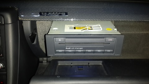 Дополнил свою новенькую RNS-E, CD чейнджером, который отжал у своей любимки BarbA4. У нее все равно китайская голова стоит и чейнджер…