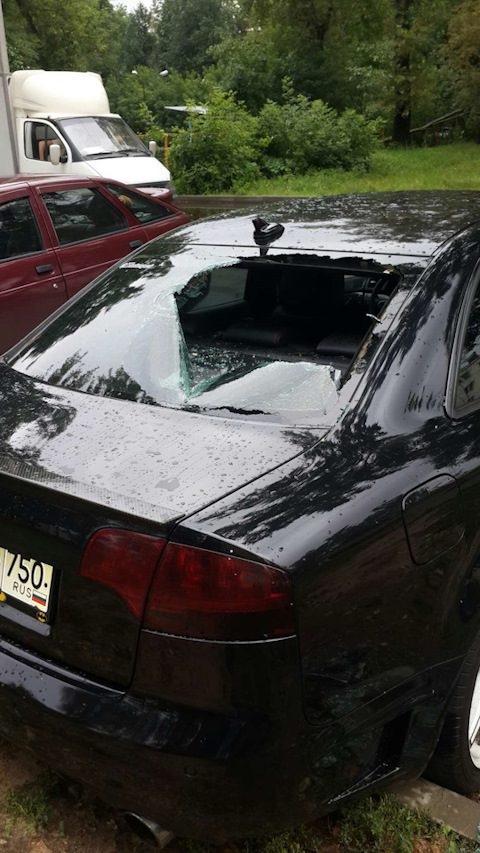 На прошлой недели в Москве была ужасная гроза с сильным ветром и проливными дождями. От этой грозы пострадало тысячи деревьев и куча машин. Моя машина входит в это число пострадавших.