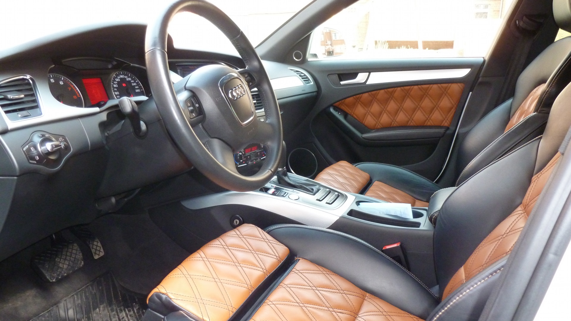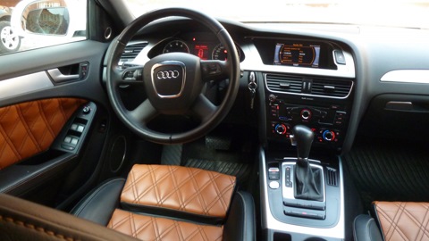 2. кожаный салон в двухцветном исполнении с двойной ромбо образной прострочкой, переделанный в Москве (по словам предыдущего хозяина). Склонен верить этому, так как таких салонов в простых А4 я не встречал.;