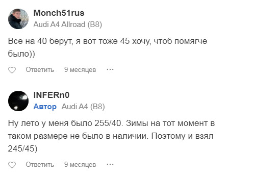 Резина 255/35 R19. По дискам не помню ширину, вылет 43. Если надо ширину завтра могу попробовать до гаража доехать глянуть