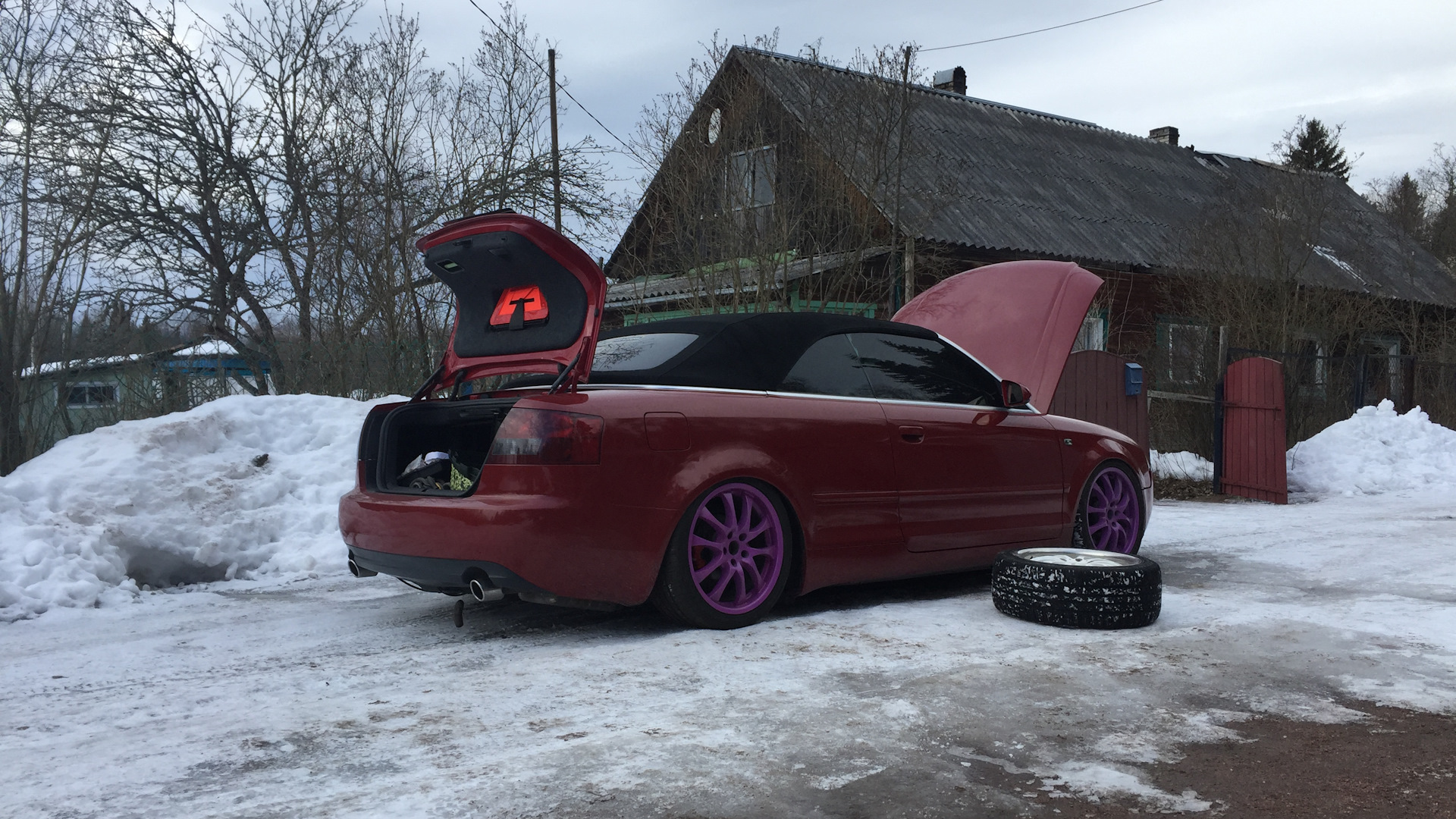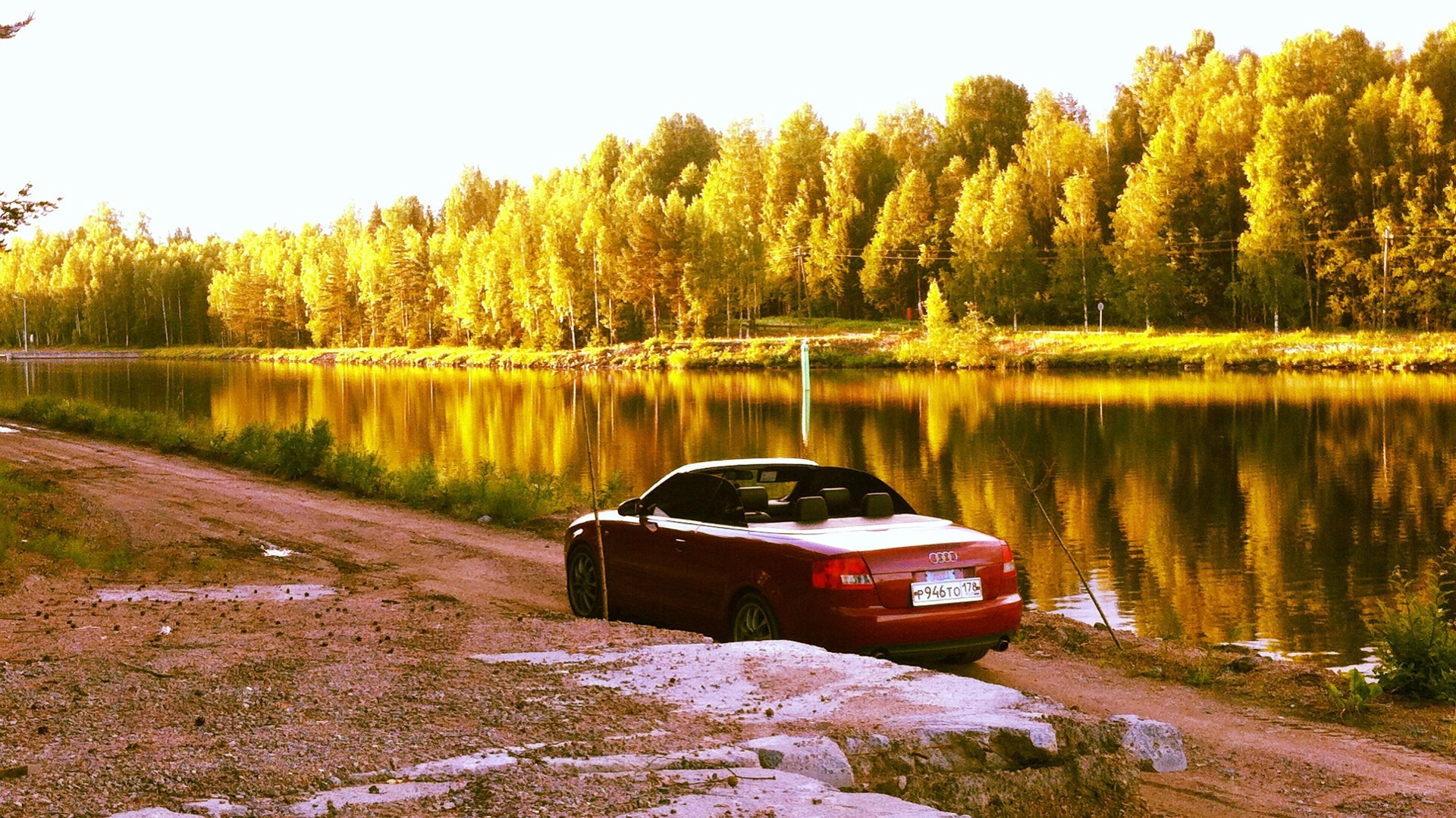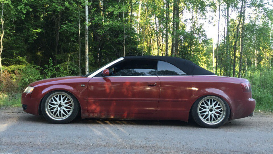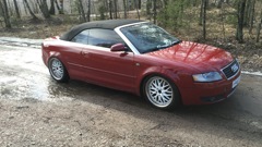 Купил я ее чист случайно, давно мечтал об ауди а4, пока мой аутлендер был долгое время в ремонте, присматривался иногда к этой модели, выбирал, и как то случайно увидел ее…красную "без крыши" и она прям запала мне в душу…позвонил хозяину, договорились посмотреть и я буквально спустя час уже ехал за ней…когда увидел ее в живую я был в шоке .никогда не думал что буду ездить на кабриолете :) но теперь она моя :) сверкает на солнышке блестками:)