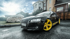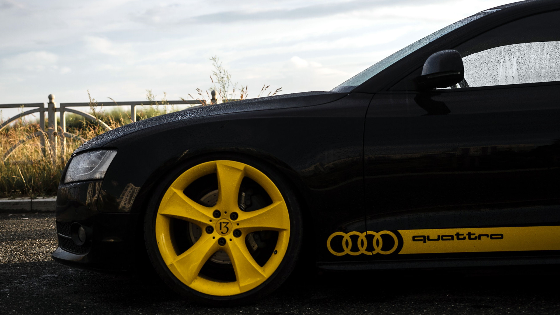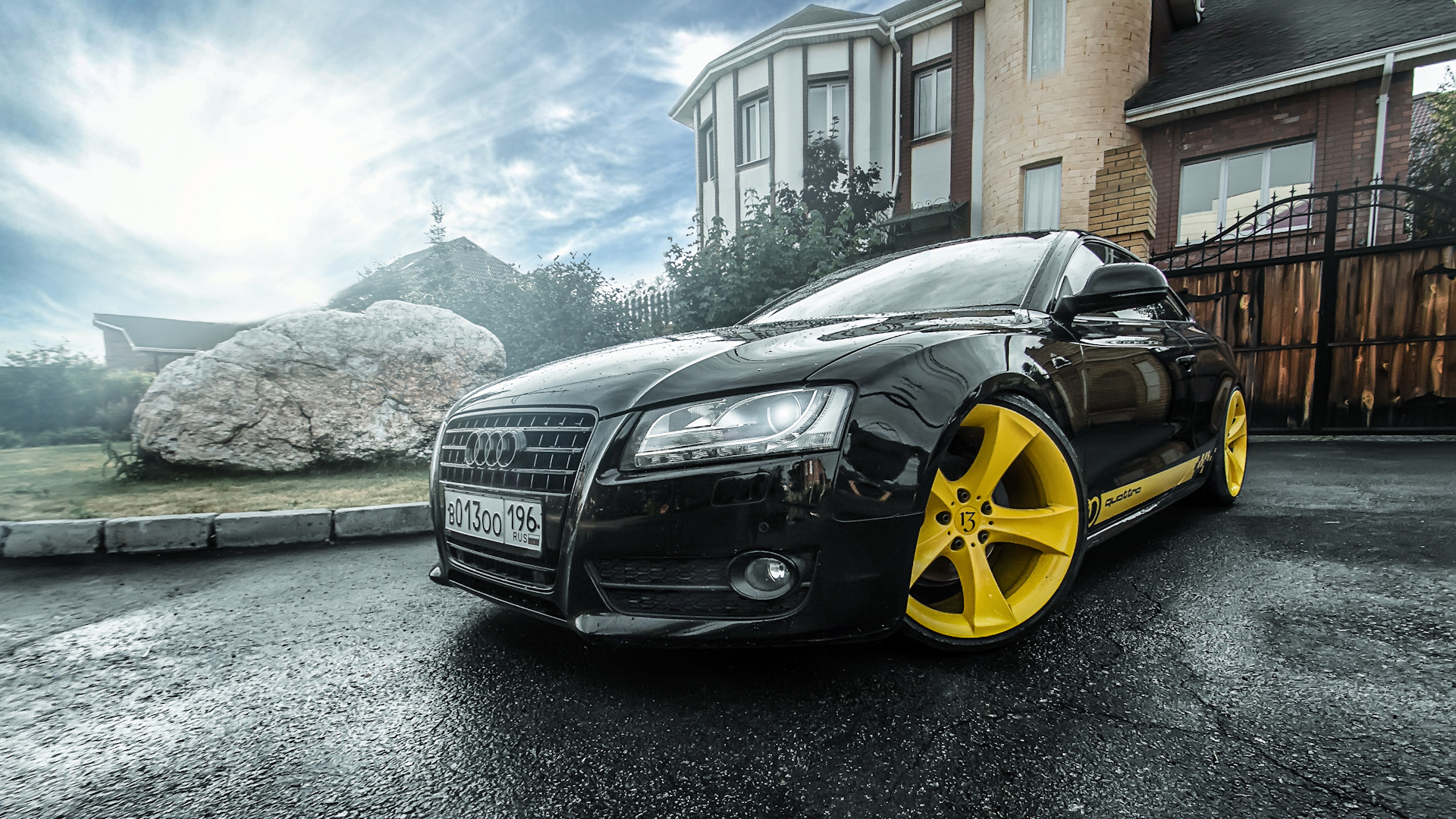 5. Custom shadow line + audi dope logo6. FK Automotive coilovers7. Custom yellow stripe