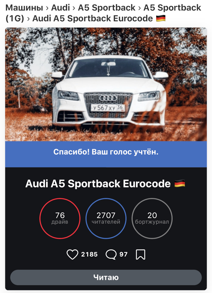 Как и, пожалуй, большинство владельцев Audi, я пришел к этой марке после Chevroeta, в поисках еще большего драйверского удовольствия. Те кто имел счастье попробовать эту тачку на дороге, меня поймут.)😎 Ракета с кучей кайфа!