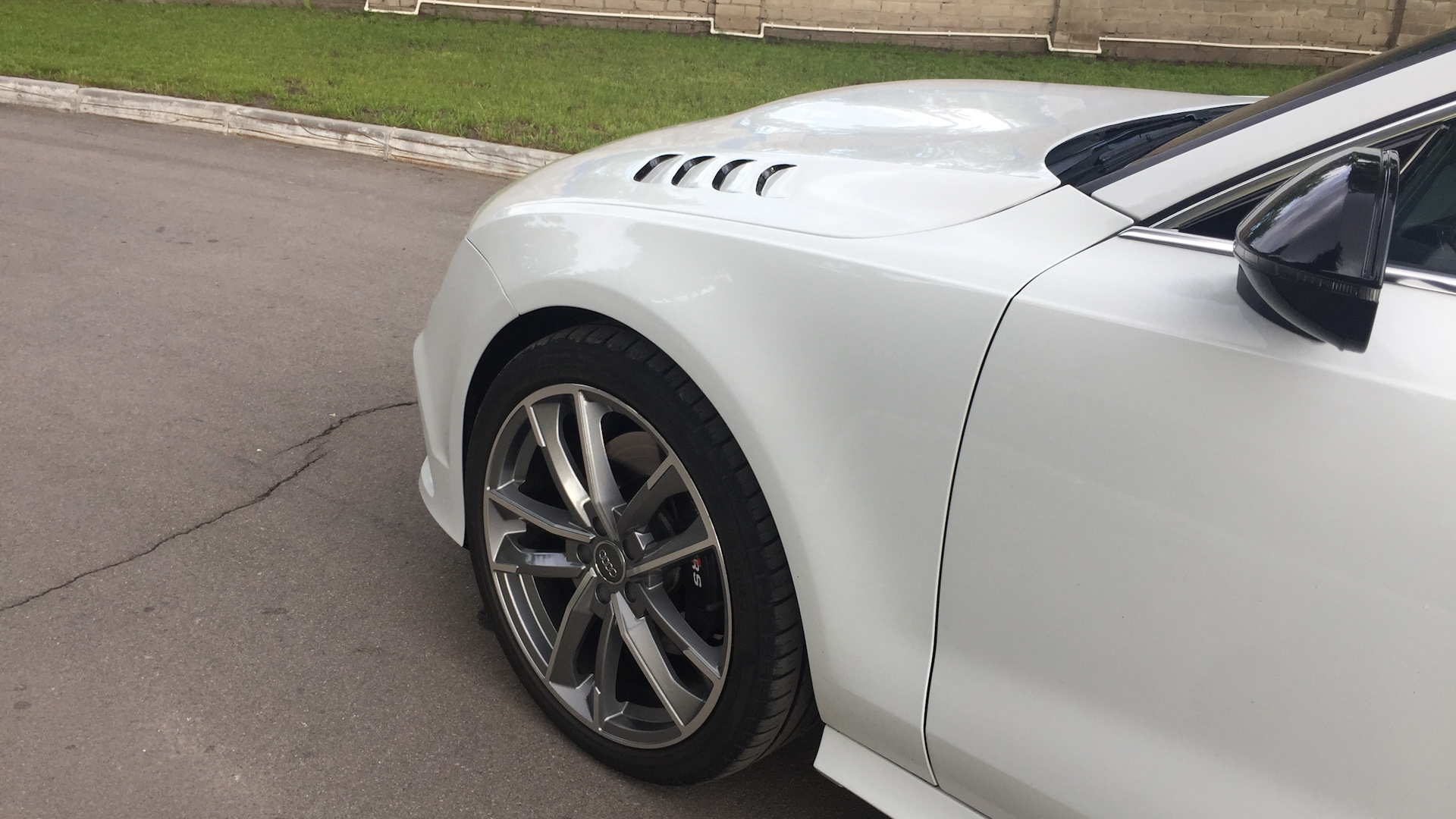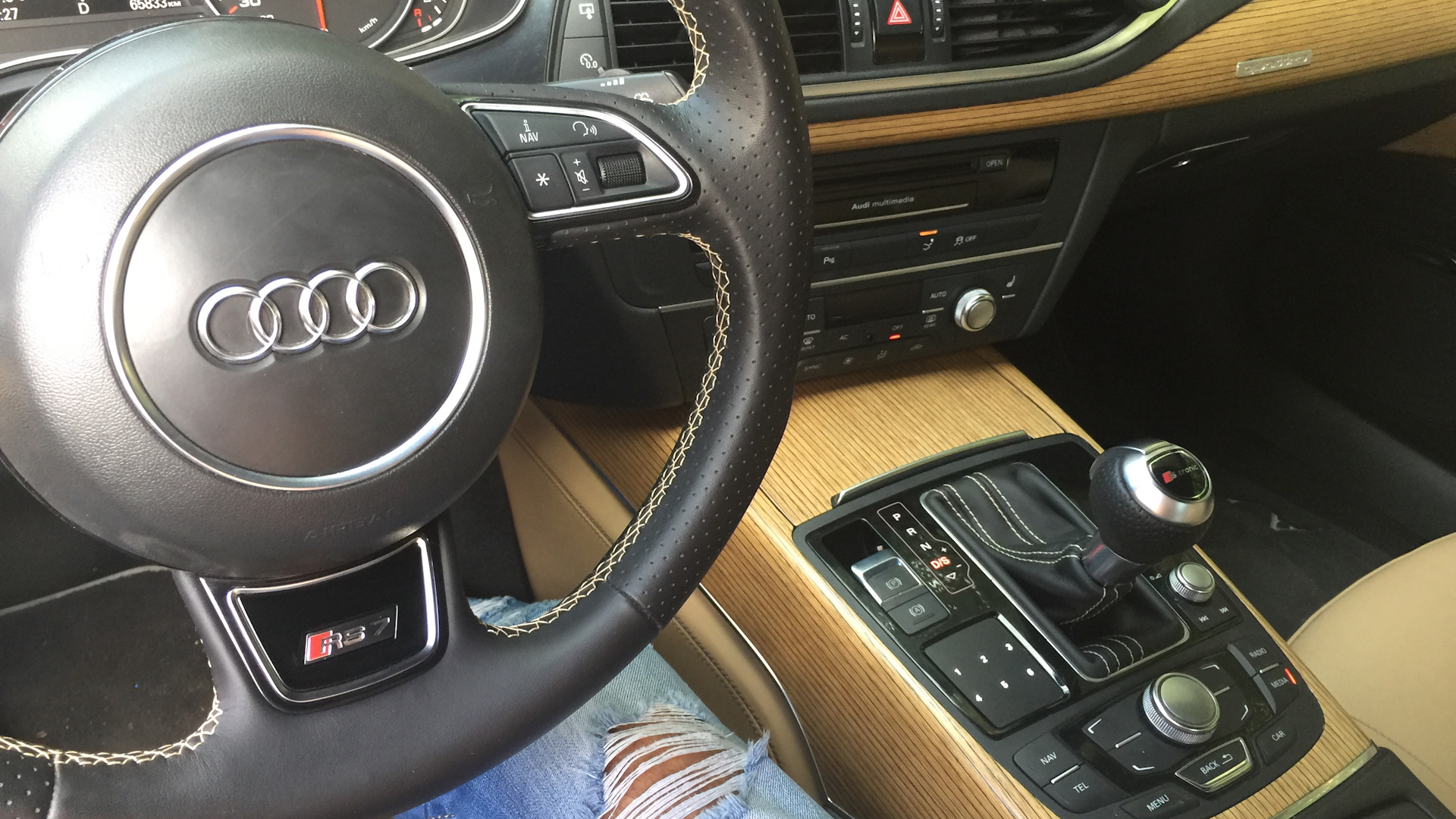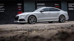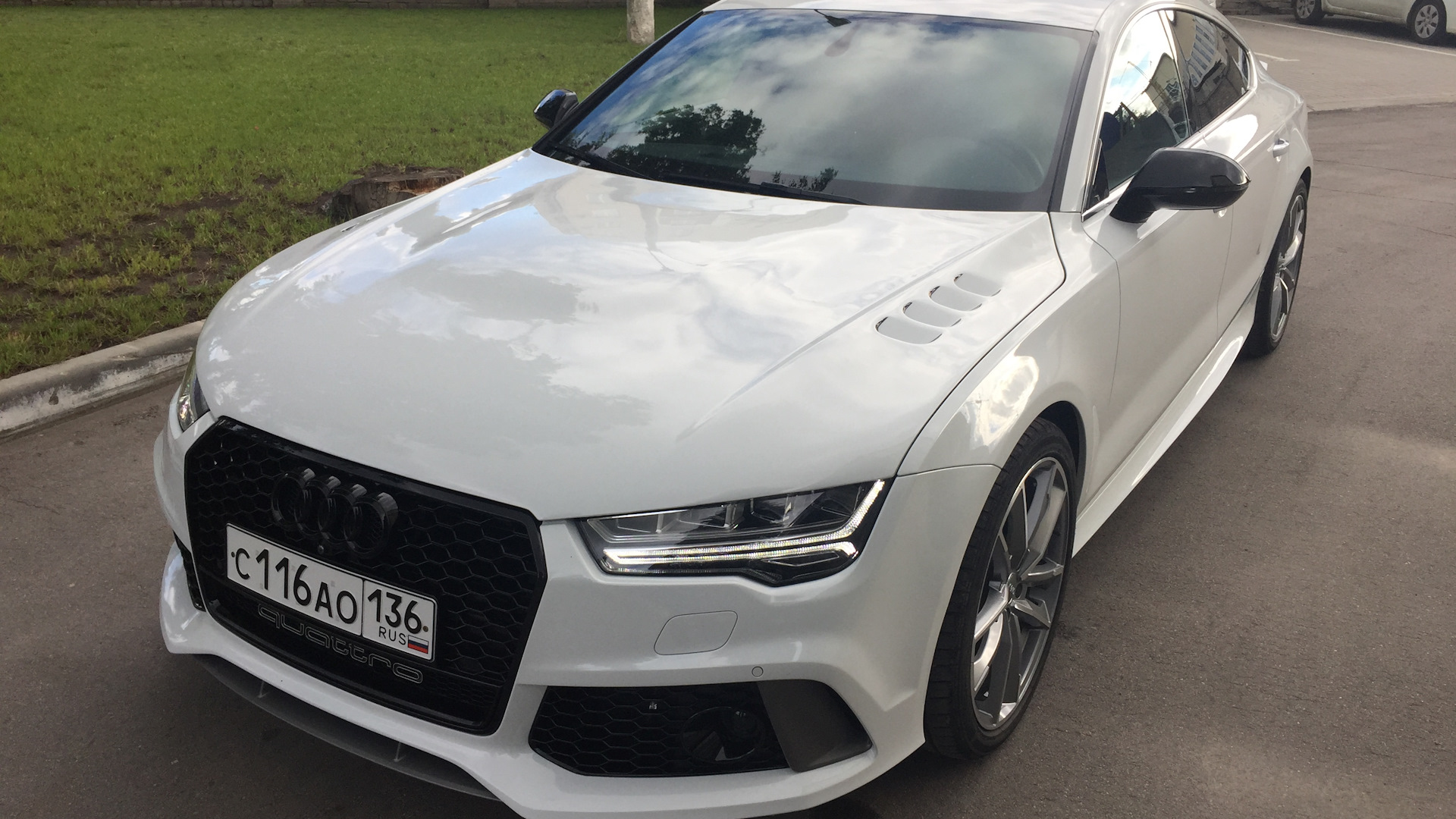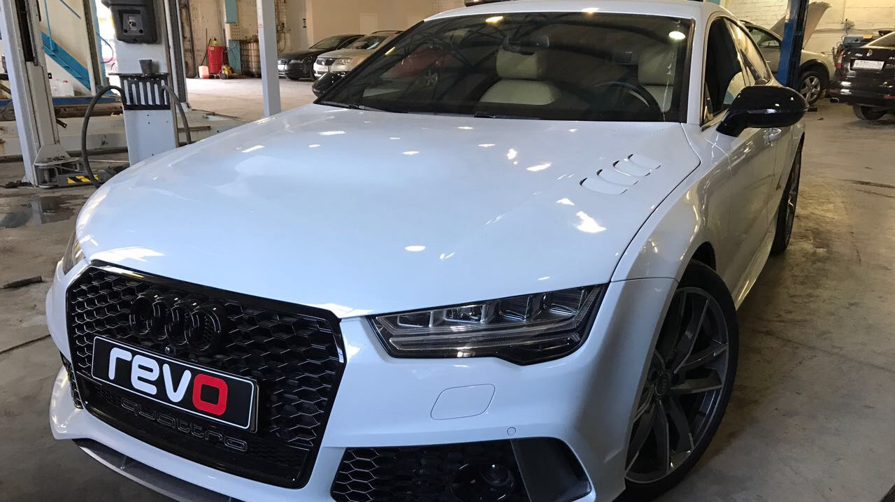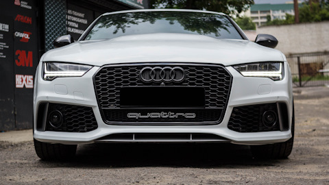 Салон Audi exclusive (бежевый с черным), Full led оптика, навигация с большим экраном, камеры 360, адаптивный дальний свет, черный потолок, прямоточный выхлоп без банок с электрическими заслонками Audi active sound, накладки на педали Rs7, руль Rs7, рычаг переключения акпп Rs7. Сделан полный внешний рестайлинг под Rs7 Perfomance 2017, 356 мм тормоза ATE Teves, shadow line.
