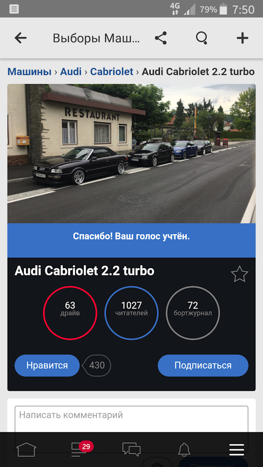 Крутая Ауди, сложно выбирать среди достойных конкурентов) но все же за тебя, шикарно выглядит, удачи