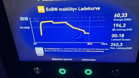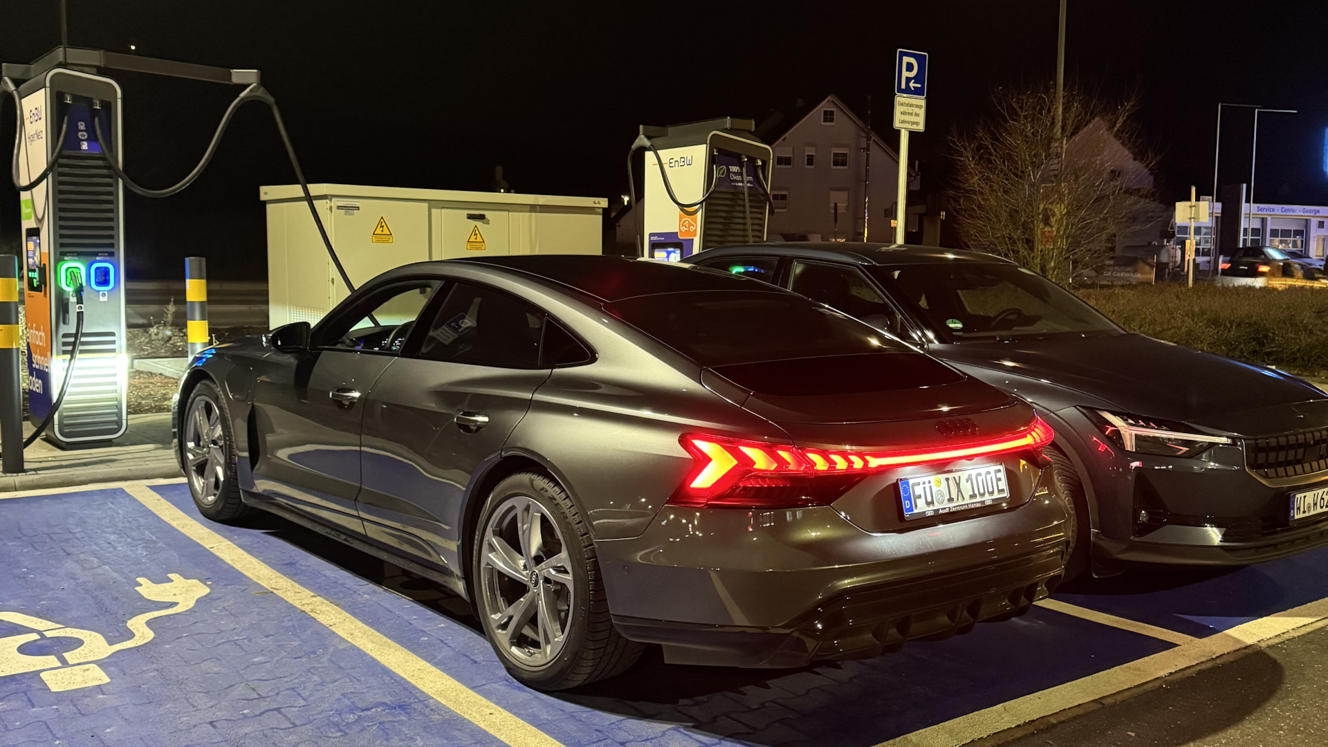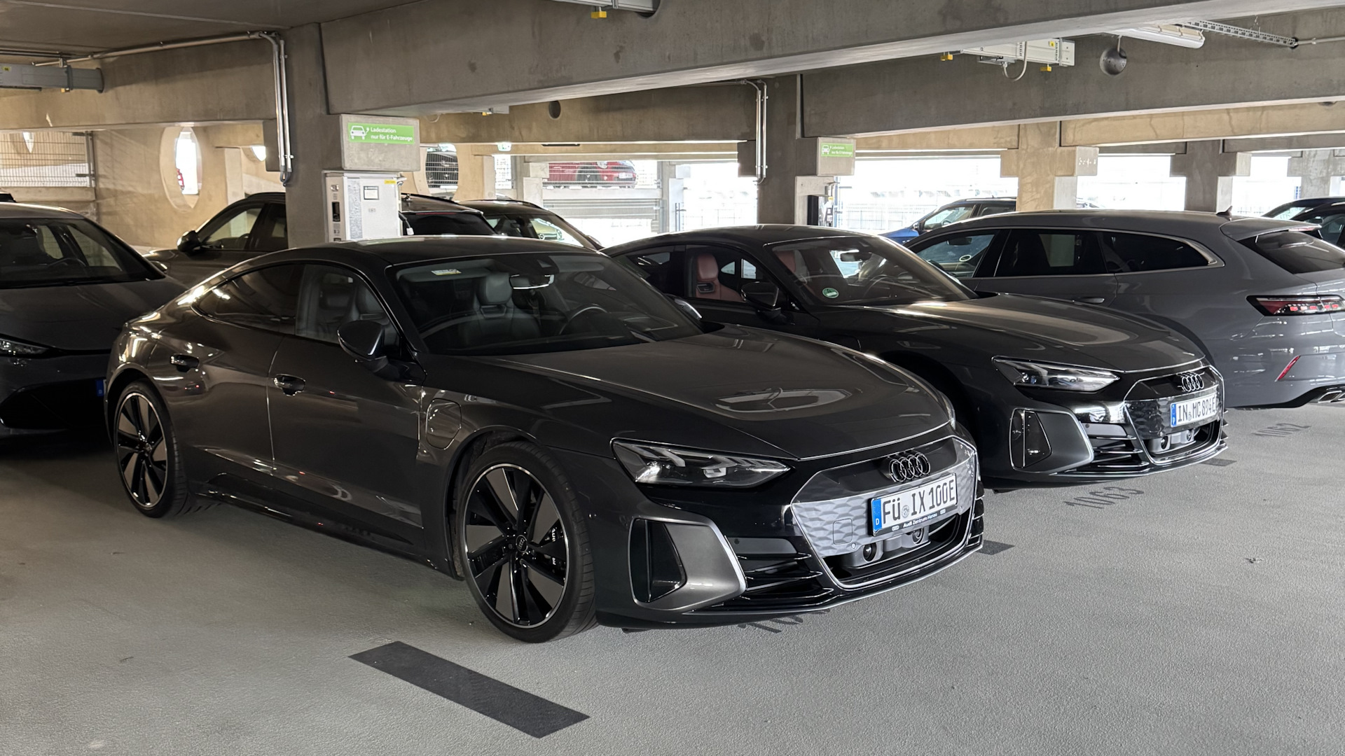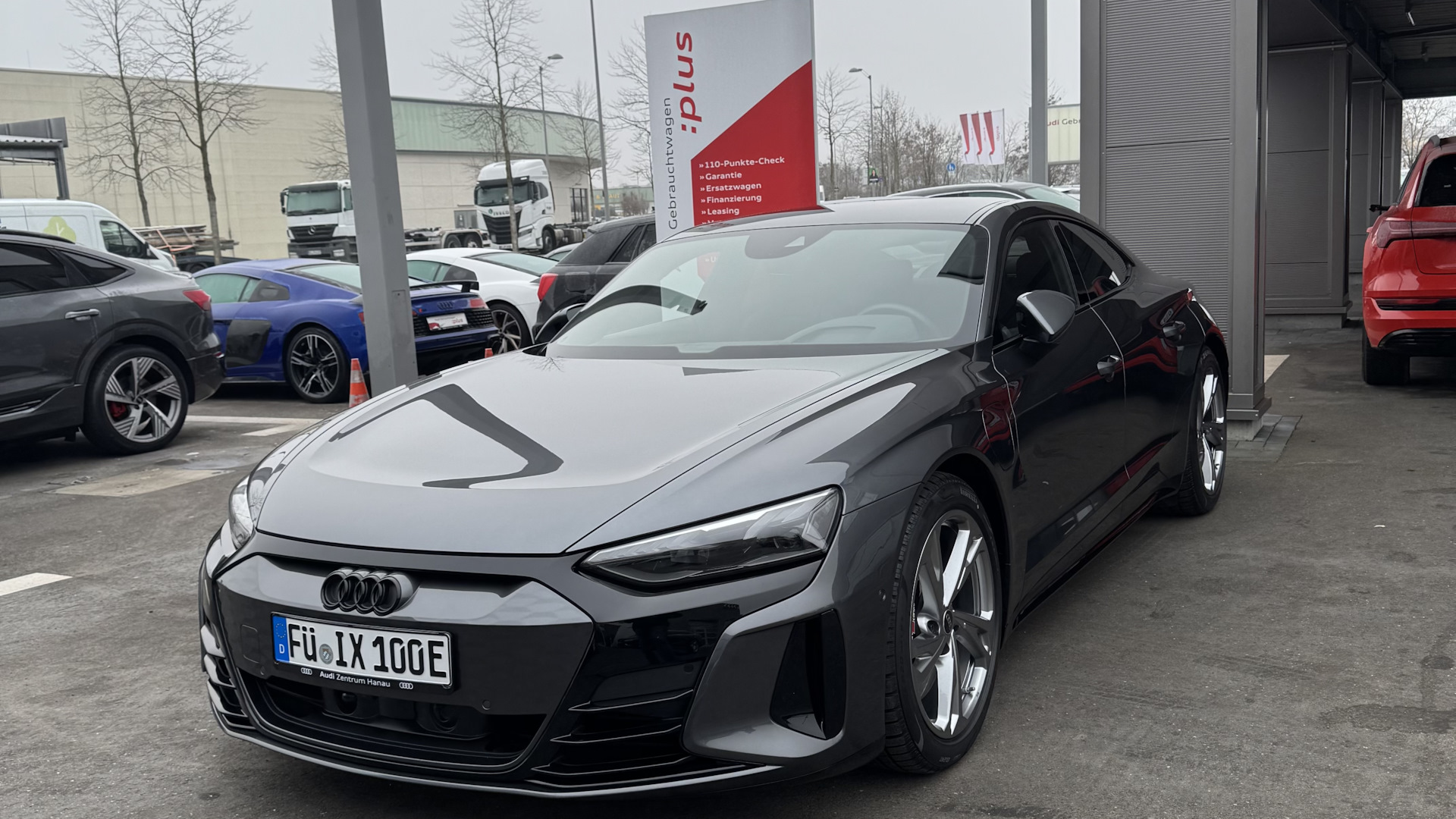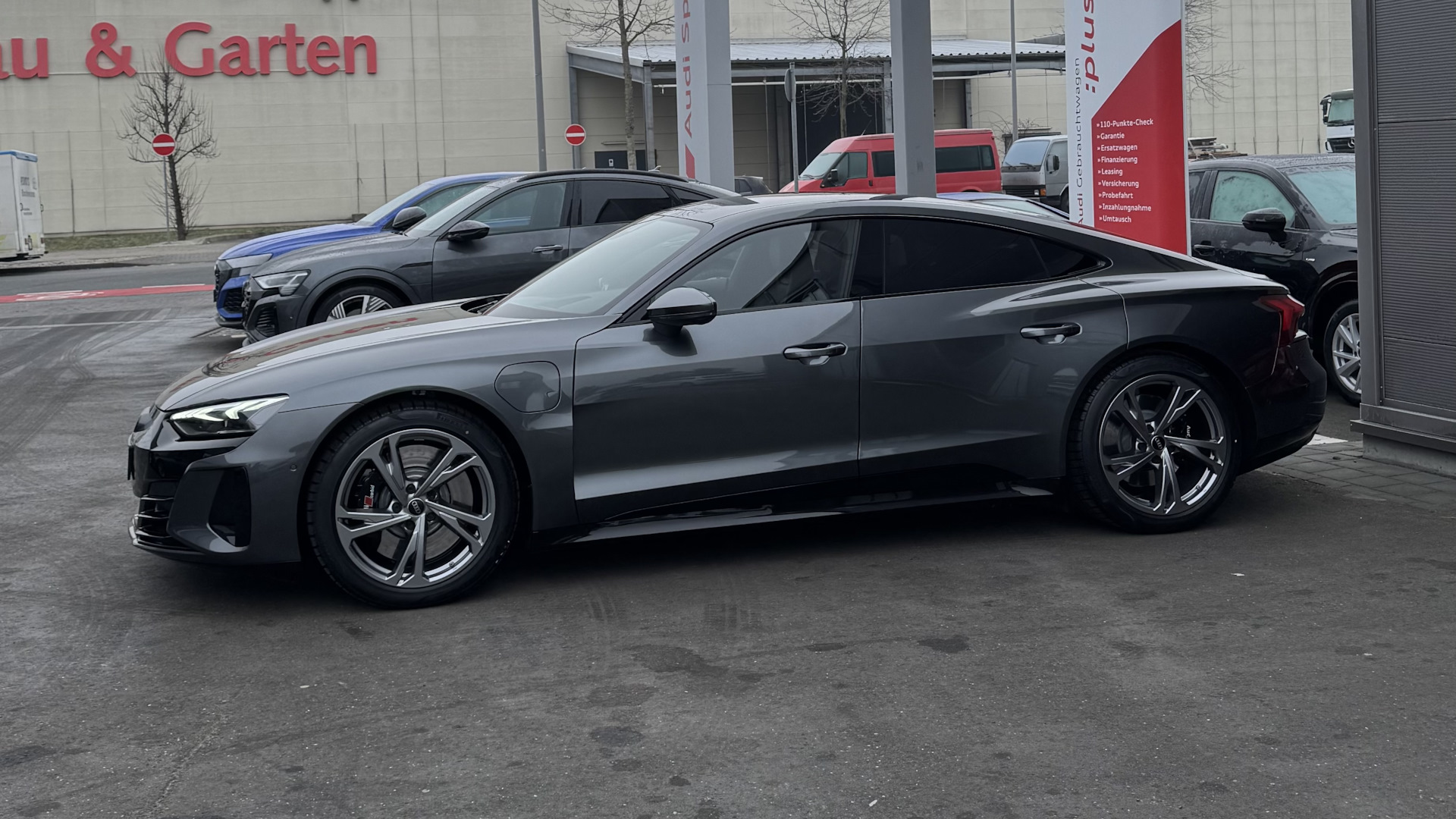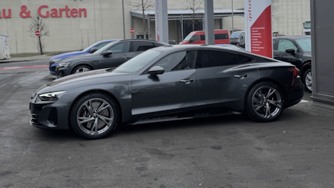 Audi e-tron GT. 4,1 секунд до 100 км/ч, запас хода зимой при полностью заряженной батареи и динамичной манере езды составляет порядка 350+ км. На подзарядку от 10 до 80% необходимо 18-20 минут (станция зарядная должна выдавать минимум 270 кВт).