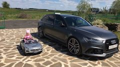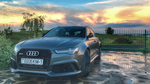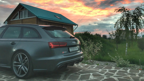 Вкратце про сарай, вообще можно наверно ничего не писать, одно слово RS6 говорит само за себя…она чумовая…женщина моей мечты))) Прет как угорелая, а при этом в спокойной езде и даже на 21 колесах чувствуешь комфорт. А куча всяких примбабасов заставляет с собой брать дочин слюнявчик для себя))) Из комплектации наверное проще написать чего нет, чем что есть. Нет пневмы, нет проекции, нет керамики и нет ночного видения и резиновых ковриков, но уже купил))) Остальное все есть =) А самый смак помимо динамики, даже сказал бы "я ссусь кипятком" от мурчанья этого V8 и двухпоточной выхлопной системы. Но даже на такой авто у меня есть некоторые планы и некоторые я уже осуществил, но это уже в БЖ =)