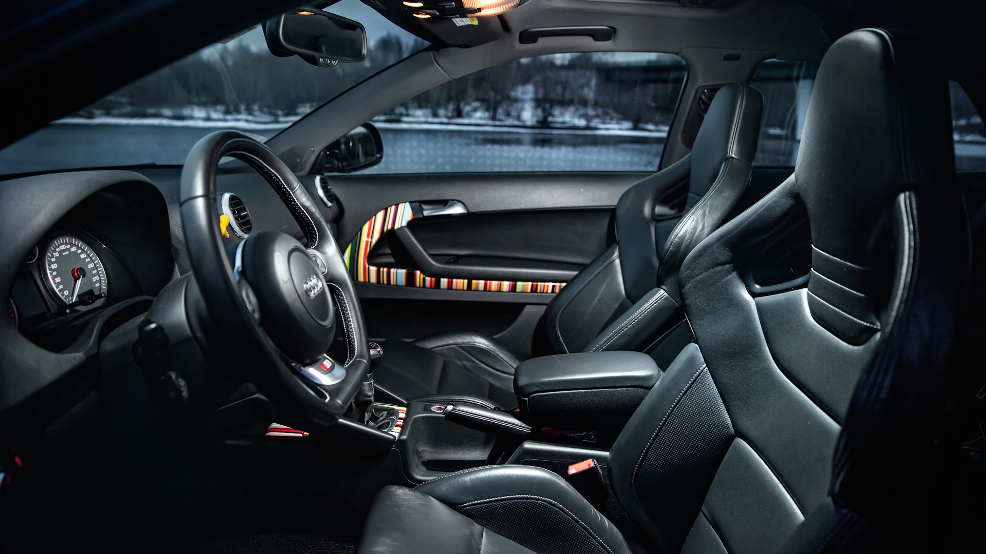 комплектация — цвет ауди эксклюзив, парктроник задний, эл.зеркала складывающиеся, кавши-мавши, акустика bose, люк, мультируль спрямленный снизу, круиз-контроль эээээ ну и по мелочевке немножко еще типа сеток в багажник, поворотных матов и иже с ними, в общем далеко не фул, но все что оч хотелось впихнуть в бюджет удалось