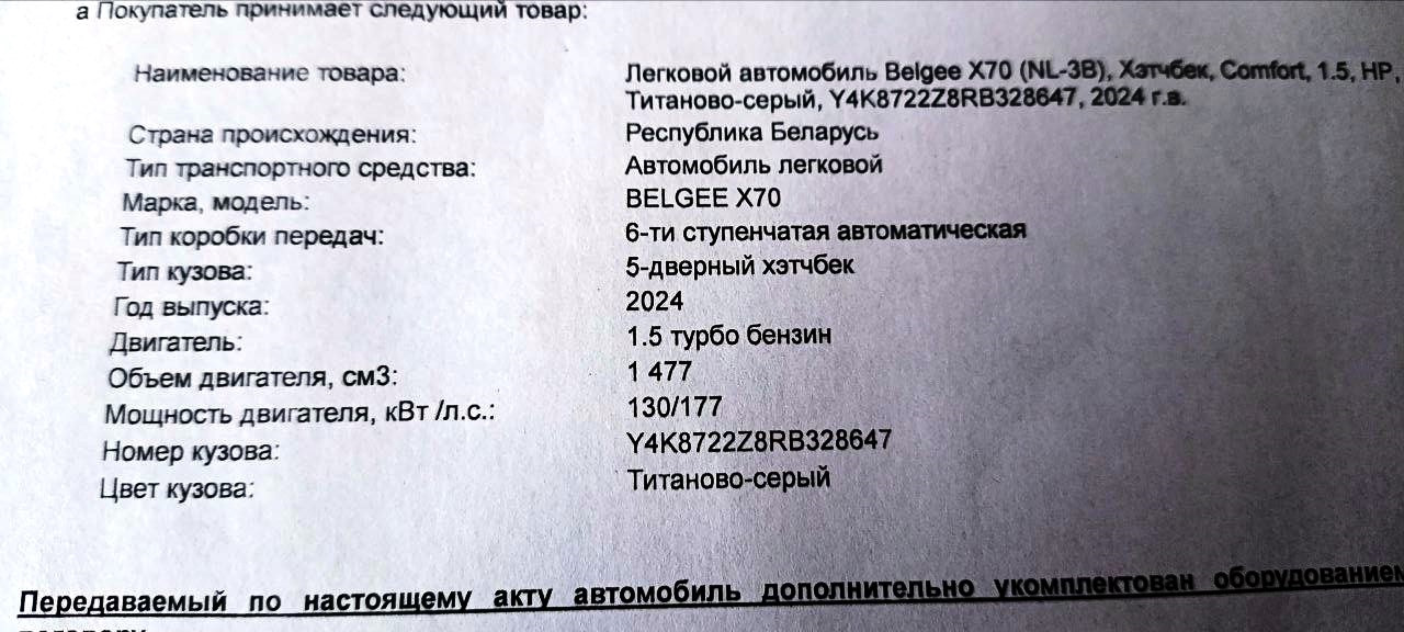 Belgee X70 2024, двигатель бензиновый 1.5 л, 177 л. с., передний привод, автоматическая коробка передач — отзыв владельца