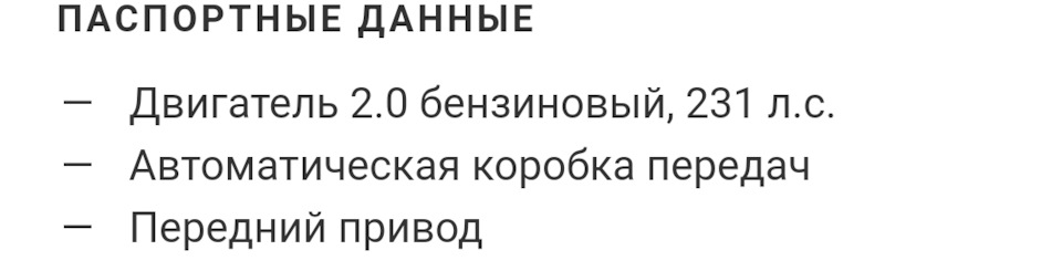 - Двигатель 2.0 бензиновый, 231 л. с.