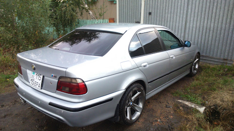 Как обычно, ехал по своим делам, и увидел эту красотку.На тот момент не думал, что буду ее вообще рассматривать и тем более быть ее обладателем. Когда продал е36, начал искать 39ку.Жена увидела обьявления и говорит, на работе у нас ездит паренек вроде-бы продает, хотя объявления о продаже не было.На следующий же день узнает, да, продает.Созвонились, договорились о встрече.Стою, курю, нервно иииии, вот она подьезжает.Я чуть окурок не проглотил.Стоит она на 18 дисках, вид дерзкий, даже очень, обвес, но об этом в отдельном бортовике.Вобщем посмотрел, кости целые, гнили не нашел вообще, что очень удивило.Один поддомкратник требует внимания, и возле заливной горловины бака жучки пошли, от того что баварцы не сделали сливное отверстие для воды.