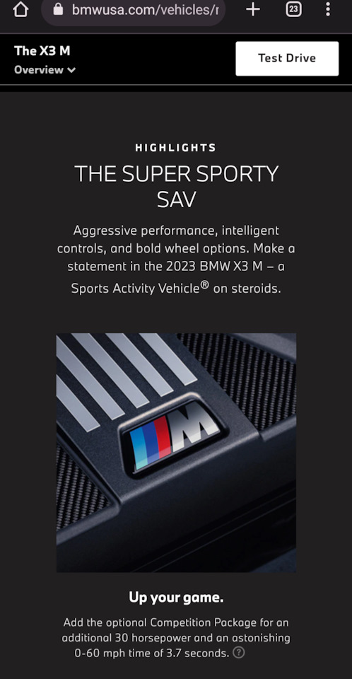 По итогу найдена компромиссная опция — x3m как высокий универсал или SAV (Sport Activity Vehicle). Также хотелось максимально спортивную версию, чтоб больше ничего не чесалось добавлять, а это версия Competition с выхлопом, 500-силами, шэдоулайном, большими колесами и классными, но не каждому подходящему спорт-сидениями.