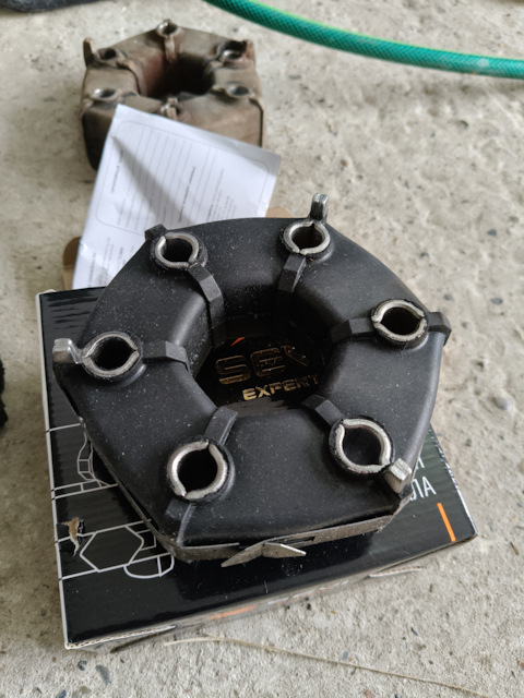 Когда снимал коробас для замены сцепления, обратил внимание, что у бублика пром вала есть отслоение резины от железа, надеялся что он походит еще, но не судьба…