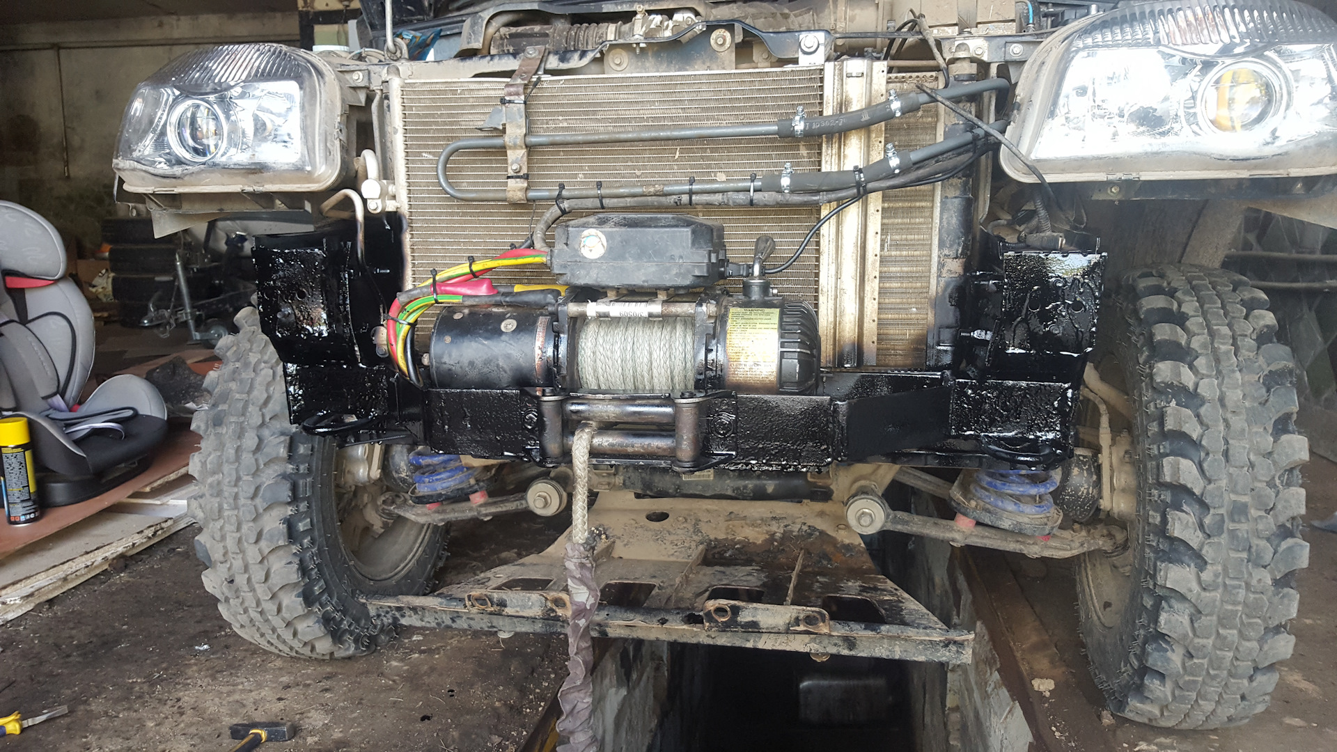 Усиленная балка заднего моста koroffka4x4.Кронштейн для стационарного крепления лебедки.Лебедка в базу.