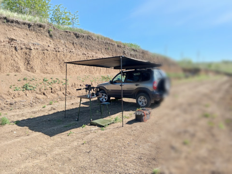 На вазоне была куплена маркиза, и доработана, глухой тент заменён на легкую камуфляжную сетку.