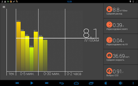 В общем через плагин Fuel Economy для Torque сделал мини статистику расхода своего авто в городе.