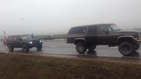 Я езжу на Volvo C303 Малышок, Chevrolet Cheyenne redneck))), Chevrolet Suburban Хмырь, Suzuki Samurai просто Самурай и УАЗ 469 (до этого — 2 машины)