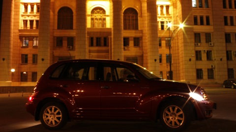 PT Cruiser с двигателем 1.6 (по турбированным версиям ничего не скажу) — это спокойный автомобиль для размеренной езды, без резких движений и прочих гоночных изысков. По городу ездить одно удовольствие, да и на трассе ведет себя хорошо. Кстати, то, что говорят про его радиус разворота — чистая правда: разворачиваемся мы по-королевски, по большой такой дуге :)