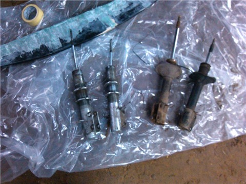 У меня была вытекшая задняя стойка, как оказалось, и вторая тоже сдалась. Когда снял, увидел следующее: мои штоки от фольца просто согнуло, из-за того, что сзади у меня макферсон и в стоке штоке 18мм…