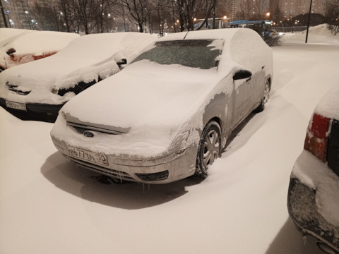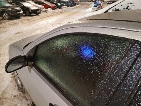 Успел переобуться на зимнюю (на шипах). А незамерзайка у меня круглогодично!