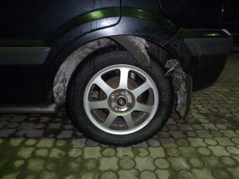 В следствии этой неприятности, штатный подкрылок (или как его ещё называют — валенок) получил повреж…
