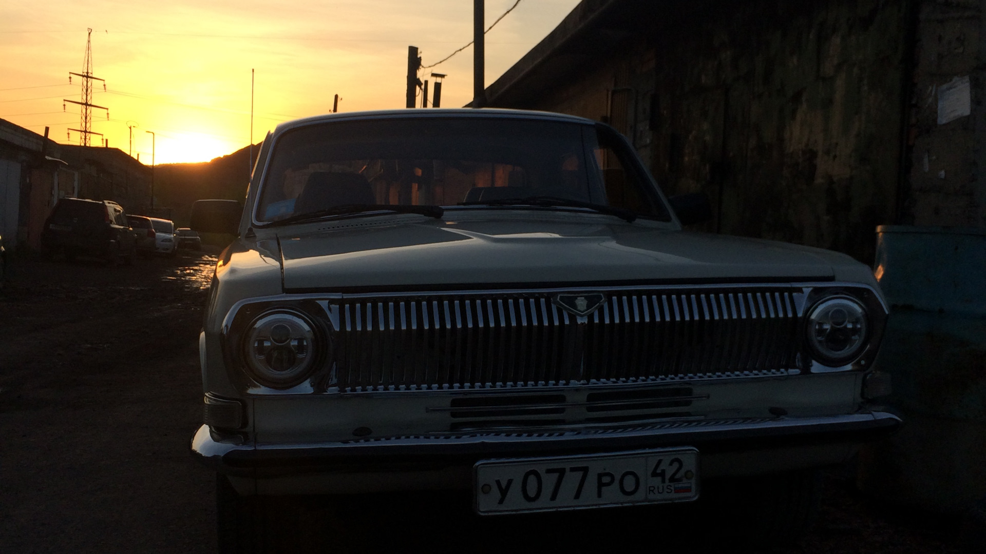 Газ 2410, 1992 г. Последний год выпуска. Получили ее в Москве и она приехала в Новокузнецк в администрацию района. Пороботав свое ее списали и механик гаража забрал ее себе, а точнее подарил своему сыну на 18 лет. Он продолжая следить за ней ездил и в 2006 году я купил у него. Конечно машина красилась не раз, замена порогов, ремонт дна багажника, под задним сиденьем возле арок колеса, как говорится это болезнь у волг. Сейчас летом планирую полную покраску и замену передних крыльев, мне правое сосед в гараже на газели порвал, сейчас там шпаклевки кг. Установлен мост 3110, передняя подвеска 3110(шкворневая) кпп 5ст салон 3110, кассеты дверей оставил 2410, Двигатель змз 402. Попал в дтп, теперь новый кузов 1986 года ) собрал в новом кузове, покрасил