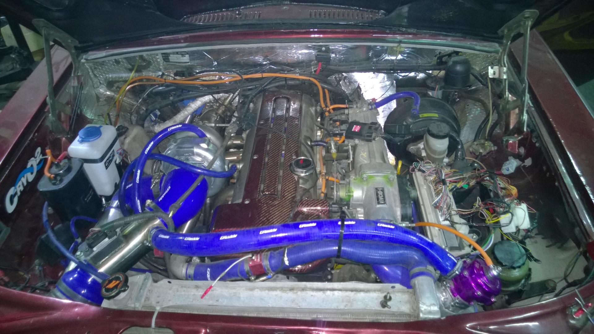 С детства я обожаю Волгу 24 серии, в 2007 году мне предоставилась возможность ее купить. Автомобиль я купил в Туле, впечатление от того что купили не очень, благо опыт по волгам был уже, то покатавшись на ней какое то время, я понял что её надо сделать очень достойной, собственно вот так вот было решено построить сей проект. Это газ 24М, двигатель 2JZ-GTE VVTI с МКПП. Немного пообкатав автомобиль, установли на него дисковые тормоза Прома 4х поршневые, а чтобы улучшить управляемость, то установили независимую подвеску от тойоты чайзер, затем захотелось поднять его мощность и в итоге, был установлен турбокит HKS 2835, правда в итоге он заменен на GTX3576R, 1000 cc форсунки, буст контроллер Greddy, бензонасос Sard 280 л/ч, широкополосник АЕМ, интеркуллер greddy, управление валами HKS Valcon, blow off Greddy, выпуск 76 мм, мозг APEXI Power FC, датчики DEFI. Летом автомобиль еще был без салона, сейчас плотно занимаюсь ее салоном. По подвеске установлены Bilstein b6 sport, усиленный передний и задний стабилизаторы ну и само собой заменены передняя подвеска на шаровую и сзади винтовые стойки HKS Hyper D.
