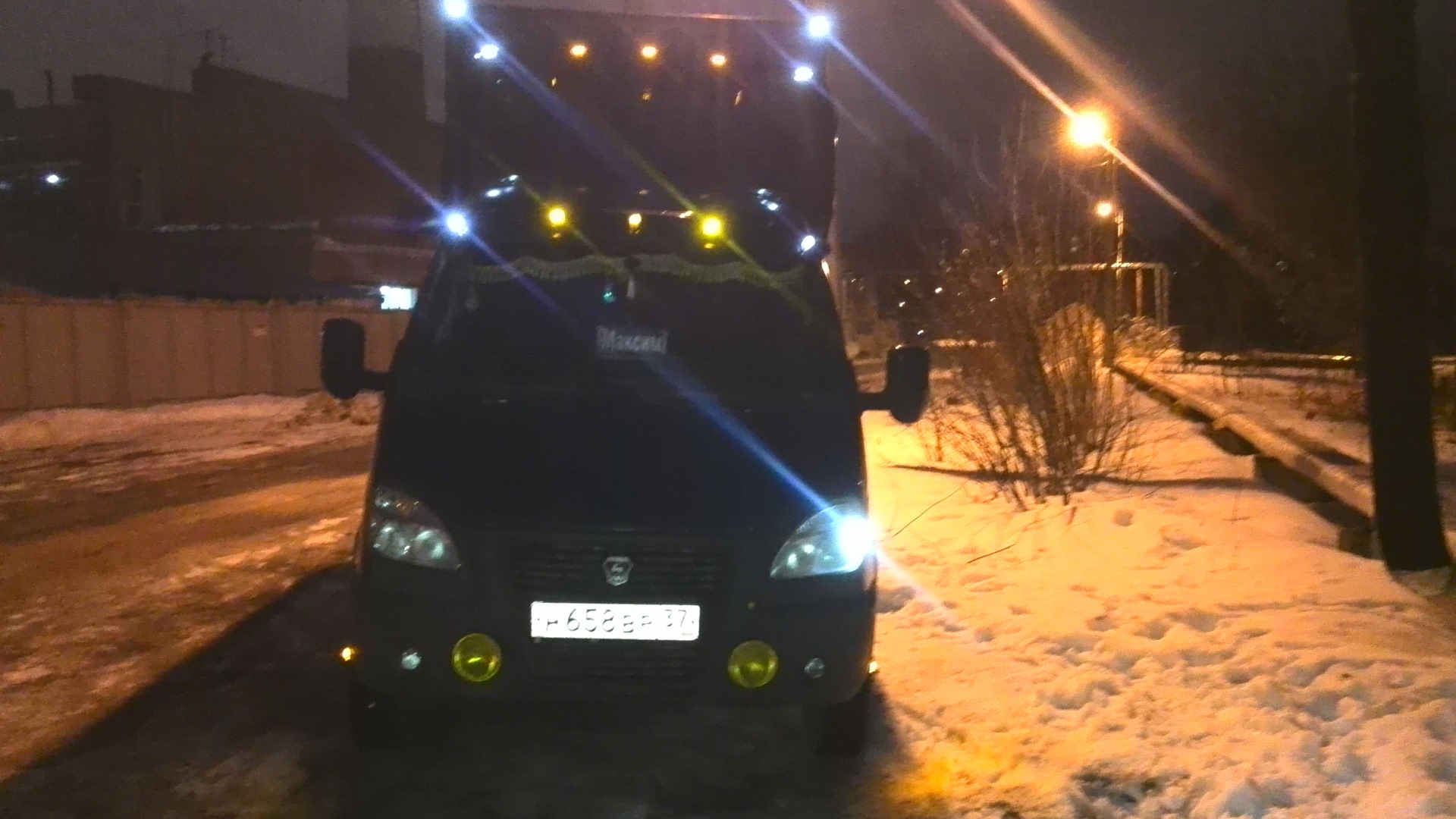 Всем привет! Купил данный автомобиль в 2012 году в апреле без всяких тюнячков.Ну естественно начал работать и по немногу решил придать ей болие выделяющийся вид ну и для себя конечно.В начале установил разнообразые светодиодные габариты по всему периметру авто.Так как мне это нравиться особенно в темное время суток.Сделал ящик для инструмента.Установил бампер от Бизнеса.В салоне выкинул задние сиденья, всю промазал, утеплил, и сделал спальное место.В дальнейшем установил автономный отопитель.Установил водительское кресло от Мерседеса!Не сравнишь с Газелевским!Ну итак по мелочи для комфортной езды.В плане технического усовершенствования Не особо заморачивался так как устраивает этот двигатель.До первого ремонта набегал 420 тысяч км.Единственное что сделал практически сразу, это поставил электровентиляторы от 214 нивы так как один раз у меня замкнула муфта и погорела проводка под капотом.И естественно вывел их на отдельные провода через предохранитель.Так же установил главный тормозной от Газели Бизнес. Тормоза совсем другие!