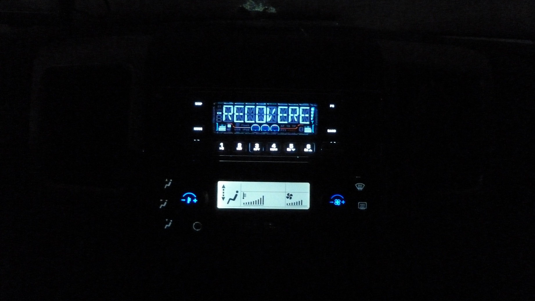 12) Заменена подсветка блока управления отопителем, блока управления светом, кнопок стеклоподъёмников на белую против ядовито-зелёной заводской гаммы;