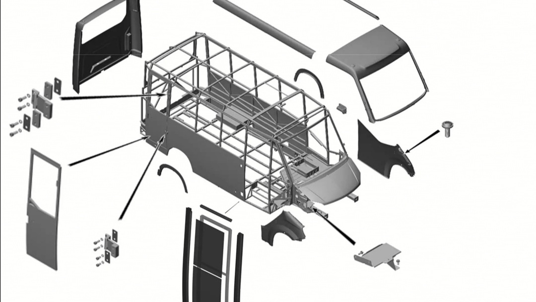 Кузовные элементы стеклопластик кроме двух оцинкованных боковин.
