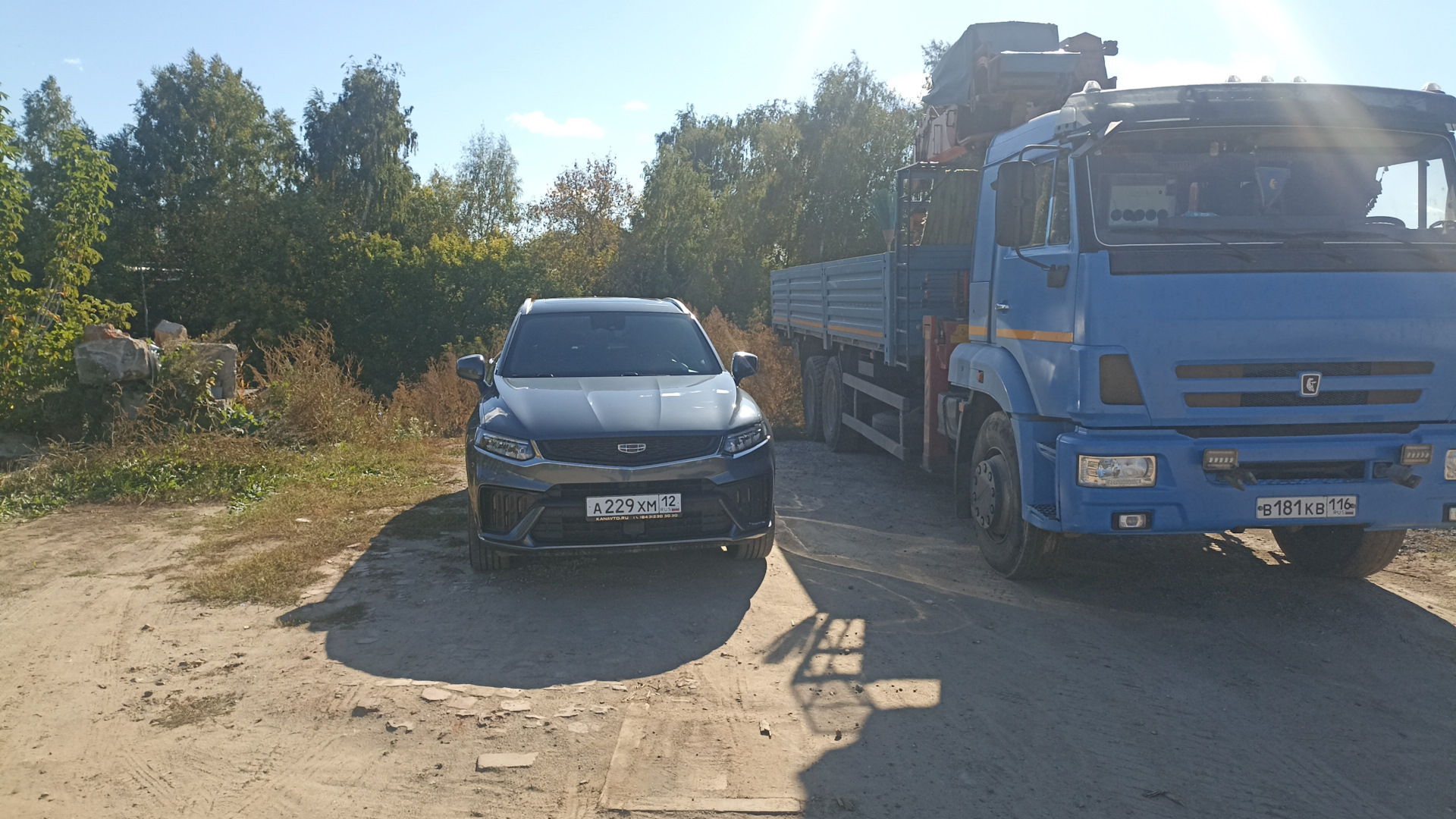 Я езжу на Geely Tugella и Камаз 65117 манипулятор (до этого — Ford Focus Hatchback)