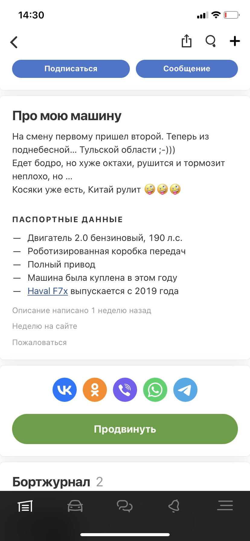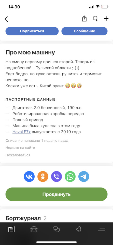 Я езжу на Haval F7x Шустрый поджопник v. 2.0 (до этого — Skoda Octavia, Audi Q3 и Audi A4)