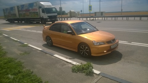 Всем доброго времени суток! Расскажу почему выбрал именно Хонду Цивик. Я пол года сидел вычитывал форумы различных авто исключительно японцы откровенно моё мнение: другие страны производят жалкое подобие японского автопрома расчёт был на 200-230т.руб у меня стоял выбор либо мазда 323f цивик 6го поколения исключительно вти мазда отпала после общения с парнем у которого были в эксплуатации оба авто начал искать 6й вти найти в хотя б среднем состоянии очень тяжело если состояние нормальное то ценник уже к 300т.руб поехали в Ростов смотреть 6й вти как оказалось мёртвый он просил за него 230 по мне его цена 60-65т.руб отчаявшись я решил посмотреть 7е поколение на фото он мне не очень понравился когда ехали смотреть его как только он появился на горизонте я в него сразу же влюбился! Написали куплю продажи, страховку и рванули в сторону дома я ехал и моей радости не было придела не смотря что в нём всего 110коней он вполне приёмистый да и расход порадовал вообще смех 5.5 при скорости 120км.ч вот я и завладел этой прелестью! нужно по мелочи ходовую под шаманить сполерок кинуть на багажник и музычку подкинуть с каждым днём всё больше и больше влюбдяюсь в неё!-смена дисков