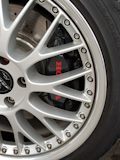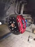 — Передние тормоза Advics с колодками и тормозными дисками Subaru WRX STI Power Stop Z23 и Stop Tech. Армированные шланги Goodride.