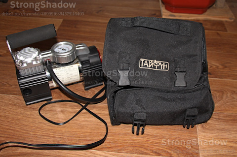 Еще в далеком 2007 году (при покупке машины) был приобретен автомобильный компрессор Тайфун, модель 403. Фирма вроде отечественная, но компрессор сделан в Китае.