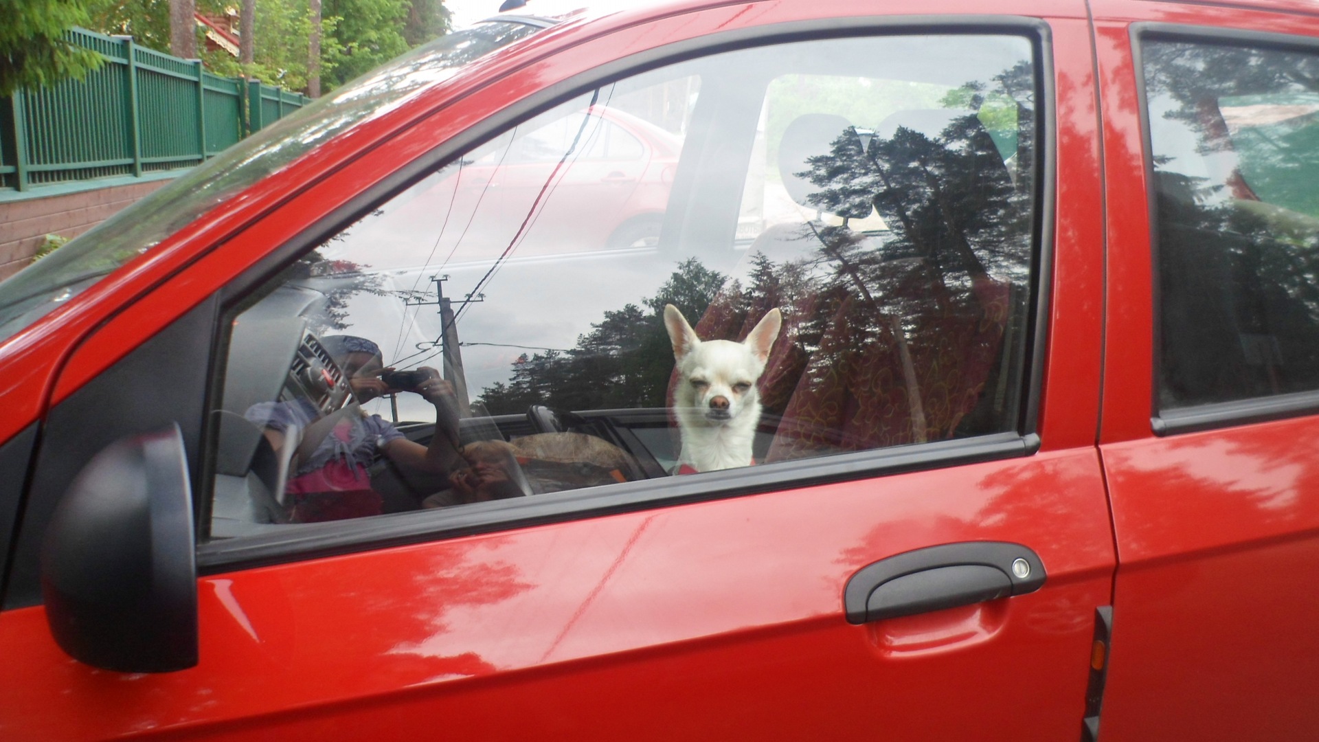 в машине где ездит ? (у меня или на руках, или на пассажирском (штурманша :) )