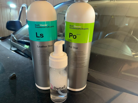 Заказал химию, чтобы почистить салон и особенно сидения. Выбрал Koch Leather Star и Pol Star. Ко всему этому прикупил еще пенообразователь. Особо фоткать не собирался, поэтому результат не очень видн…