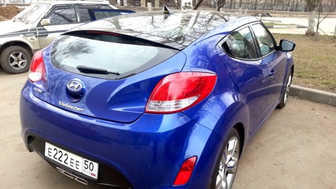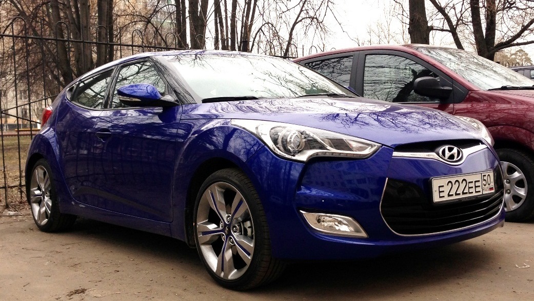 В моем семейном гараже пополнение – Hyundai Veloster. Машинка на 90% для жены, в замен ее Opel Corsa D. Купили, можно сказать, спонтанно. Не говорю что ни чего не смотрели, но цели менять машину не было. Первый раз Велик увидели на Московском Автосалоне в 2012 году, походили, поулыбались, машинка понравилась. За тем прошла осень, началась зима. Время от времени заезжали в салоны, просто посмотреть машинки. Как вариант думали на счет KIA Sportage, больше даже из-за того что живем за городом, да и на будущее детишки и все такое. Возникали мысли на счет Citroen DS3, больше под влиянием эмоций чем прагматичности. На картинках понравилась, посмотрели в салоне –внешне да, внутри жена забраковала, может не в духе была, короче отмели. Однажды в феврале, вечером, ехали по садовому и увидели перед нами ехавший велостер, еще без номеров, синего цвета. В огнях города блестел, не торопясь свернул на набережную. Я напомнил жене что такую машинку видели на выставке, потом в Италии. Объехали поглазели и эмоцианально обсуждая двинули домой. Опять как-то страсти поутихли, да и времени не было думать о смене машины.