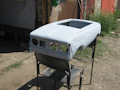 Привет. Это самоделка до меня.окошко это маленькое от газона вроде.а боковые и будка в нутри все заводское